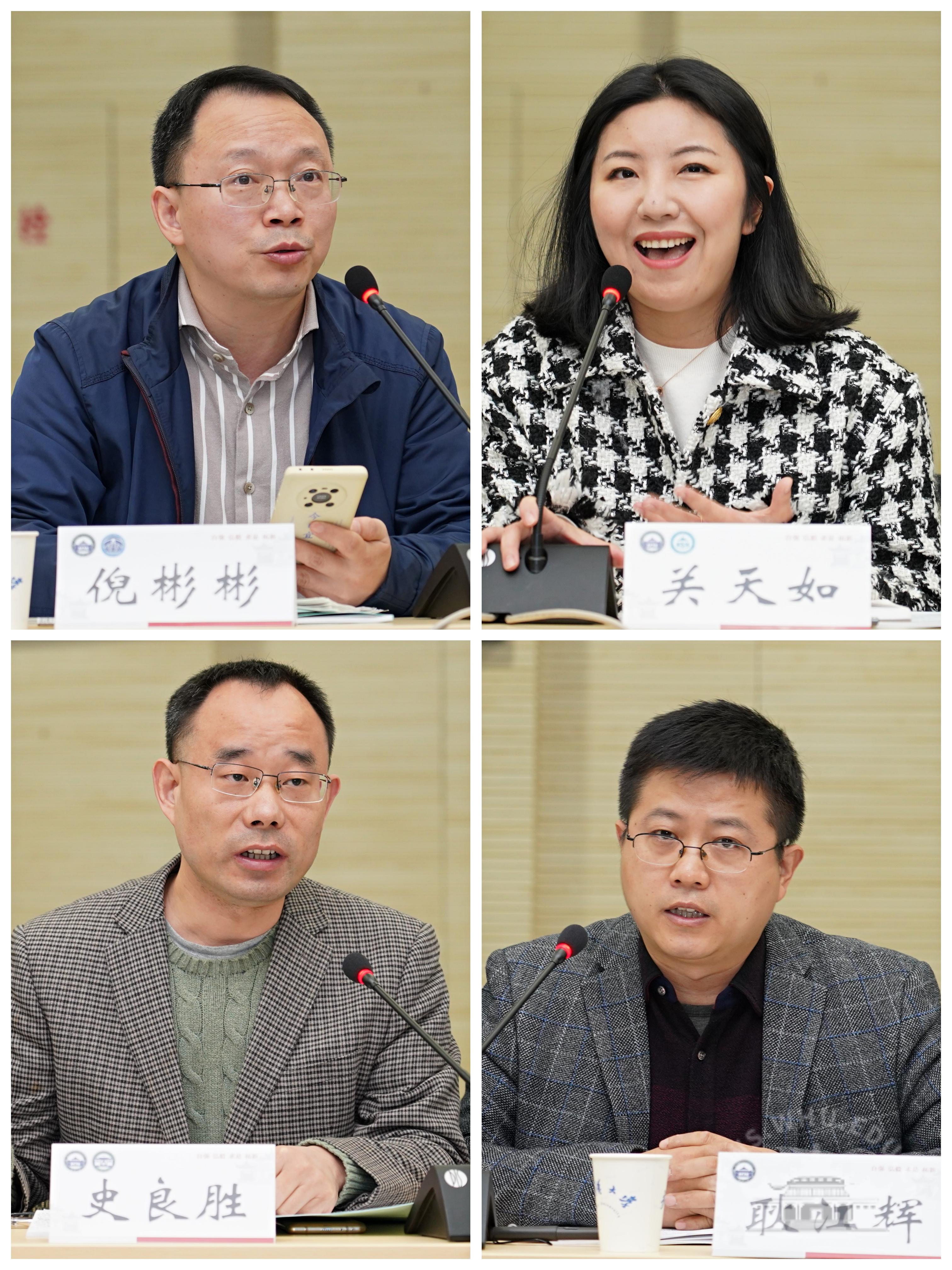在集体座谈时,电子信息学院倪彬彬教授、新闻与传播学院关天如副教授、水利水电学院史良胜教授、国家卫星导航定位系统工程技术研究中心耿江辉教授分别代表小组汇报了学习和研讨情况,畅谈了如何做好挂职工作的打算,提出了意见建议。会上,大家还就关心的问题进行了交流。研究生院院长陈传夫,本科生院副院长、教务处处长吴丹作为校内挂职人员接收单位的负责人代表,分别结合学术科研和管理工作经历,为青年学术骨干分享了经验、解答了疑惑。