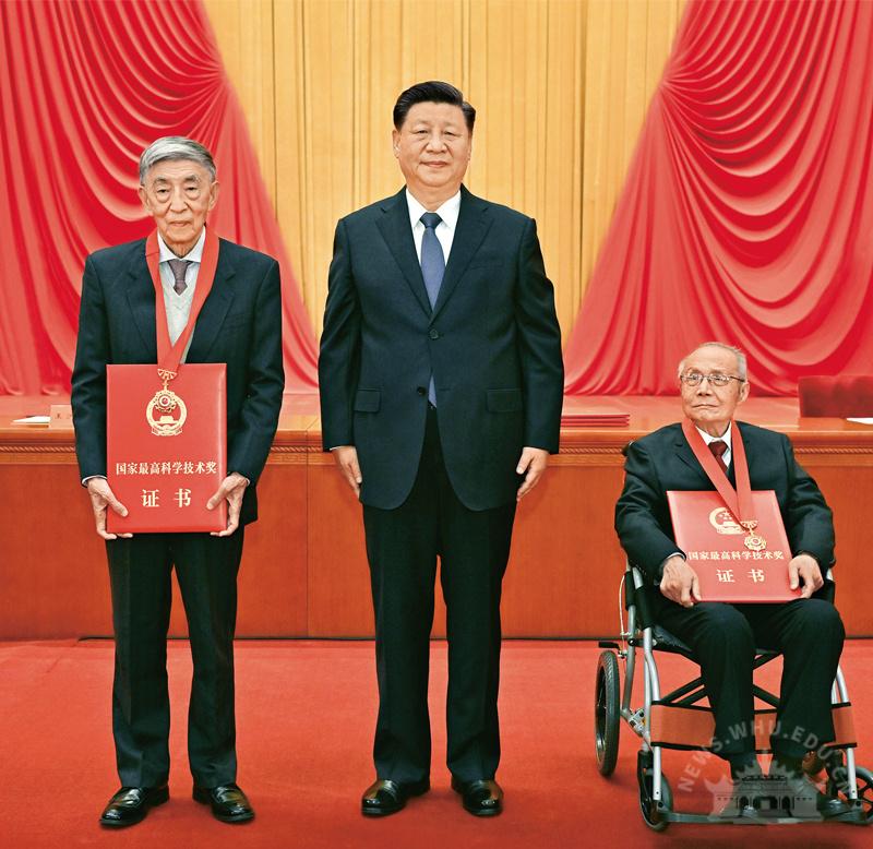 2021年11月3日,2020年度国家科学技术奖励大会在北京人民大会堂隆重举行。中共中央总书记、国家主席、中央军委主席习近平向获得2020年度国家最高科学技术奖的中国航空工业集团有限公司顾诵芬院士(右)和清华大学王大中院士(左)颁奖。新华社记者李学仁/摄