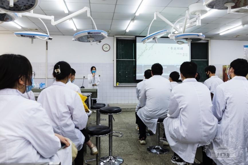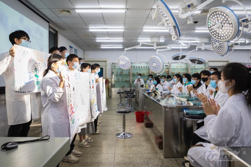 2022年5月17日,正值初夏之时,2021级临床医学八年制的同学们即将结束为期一学年的《人体结构学》课程学习,课程内容为人体解剖学相关的理论和实操。在最后一堂课上,学校“三全育人”之教学育人示范岗、学院人体解剖学教研室教研室老师和学生们一起在色花堂