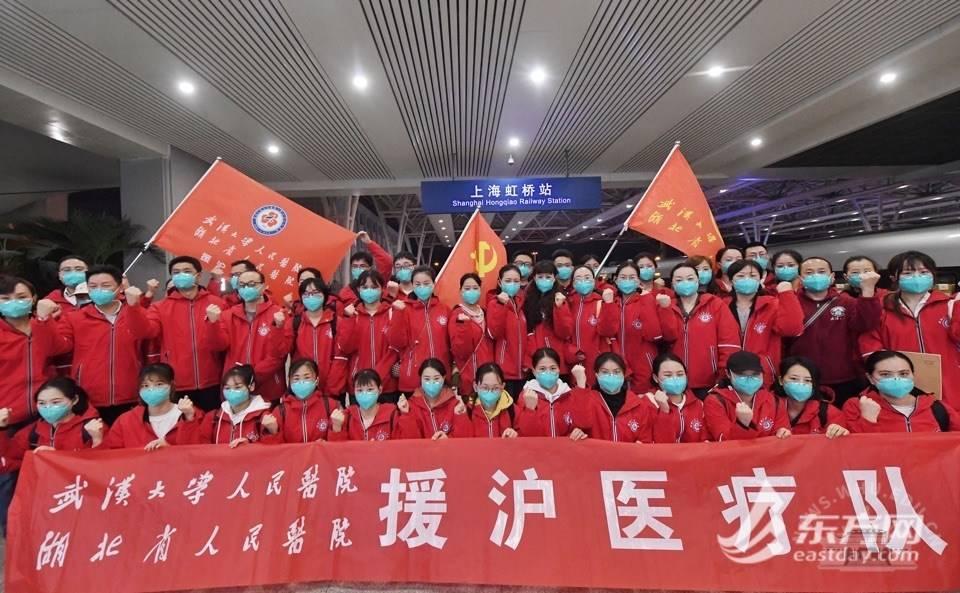 人民医院51人、中南医院51人、口腔医院12人在内,由1000多人组成的湖北援沪医疗队,已经分批抵达上海虹桥火车站。