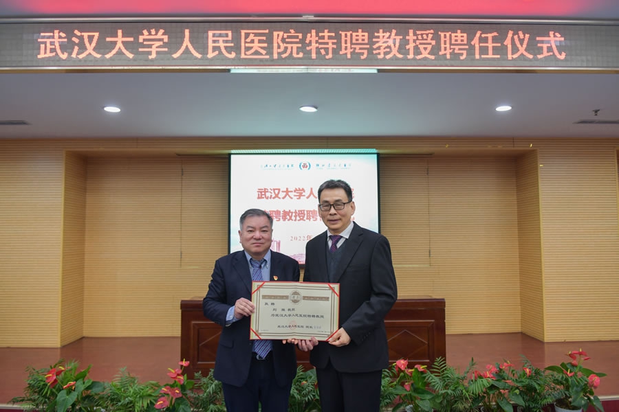 人民医院特聘教授聘书,万红慧书记为刘胜院长颁发色花堂