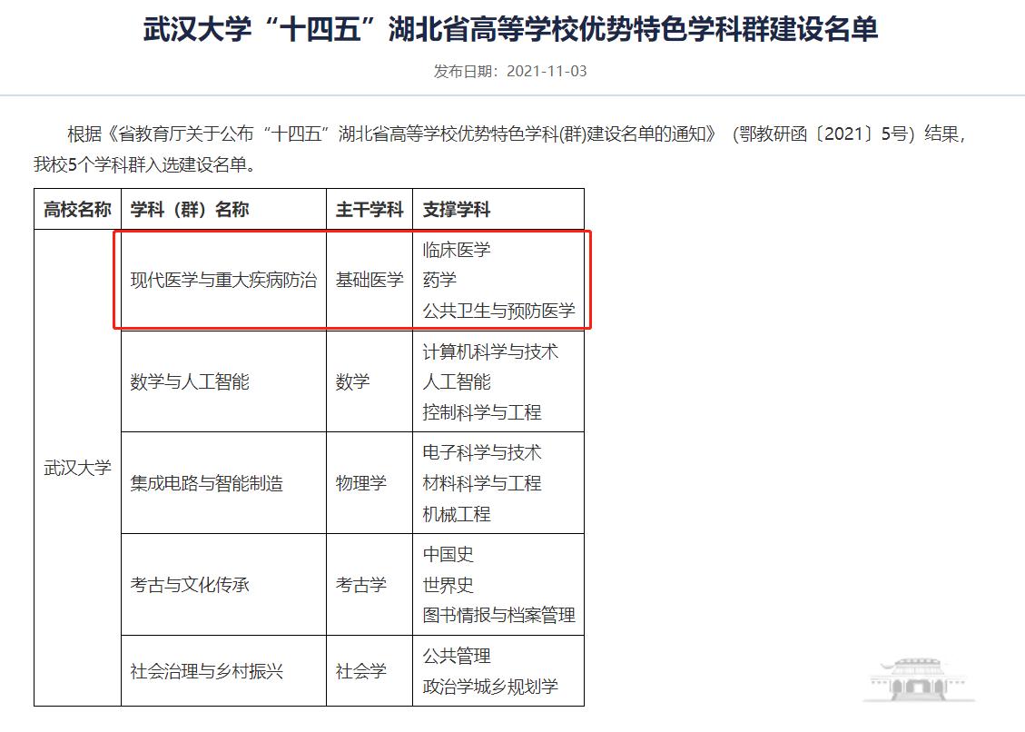 六、面向人民生命健康,服务国家战略和湖北区域发展,获批湖北省优势特色学科群建设项目