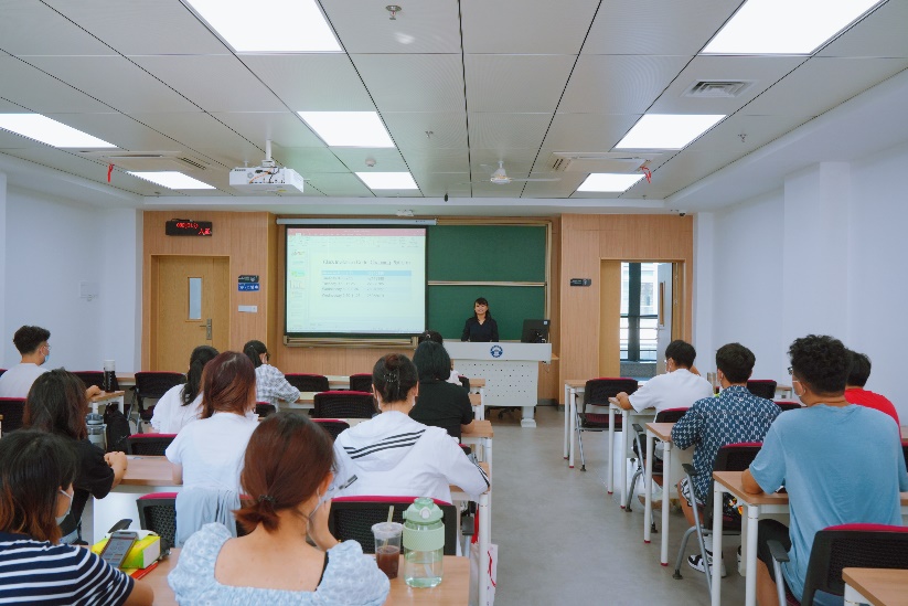 窦贤康与屈文谦来到工学部第一教学楼。他们随机走访了正在上课的若干教室,对教师的上课情况、学生出勤和学习状态、课堂秩序等进行全方面巡查。巡视过程中,窦贤康发现了一间特别的教室:同学们整齐地坐在教室里,讲台上却空无一人,老师的声音从喇叭中传来。原来这是哲学学院特聘副研究员赵盼的现当代宗教问题研究课堂,赵盼因疫情原因居家隔离,为不影响正常教学进度,她在本科生院的支持下开展线上课堂,老师线上讲,同学线下听,既保障了正常的教学秩序,又使同学们迅速投入学习状态。