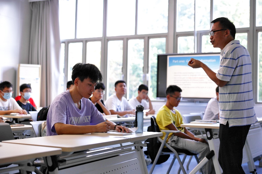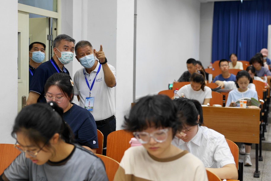 一大早,文理学部教五楼迎来了元气满满的学子。韩进、周叶中走进教五楼,认真了解教师教学、学生出勤、教学条件保障与教室环境建设情况。在多媒体管理办公室的大屏幕上,各间教室的开学第一课秩序井然,为了照顾因为疫情原因未能返校的同学,现场课堂同步直播。111教室里,金筱萍教授正在讲授《思想道德与法治》,学生们听得聚精会神,韩进在教室外驻足倾听,不时点头,对金老师的授课内容与方式表示肯定。装饰一新的教员休息室,将为教师休憩、师生对话提供舒适的空间。