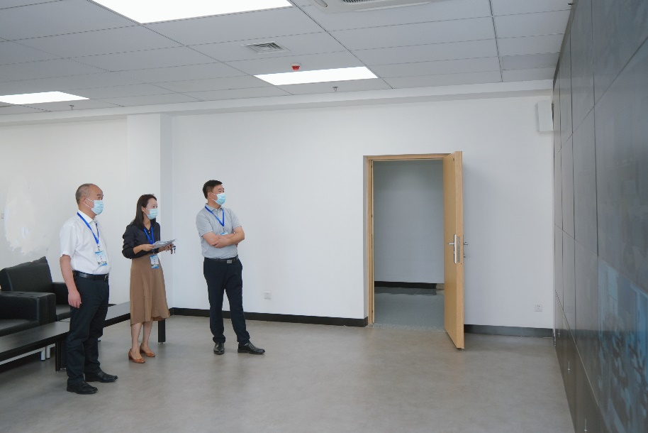 在教学巡视中心,窦贤康和屈文谦体验了学生网络课堂的语音效果。窦贤康对开学首日师生们积极饱满的精神状态表示肯定,并提醒相关部门、任课教师严格落实疫情防控要求,加强对课堂教学的跟踪与管理,提高教学质量。