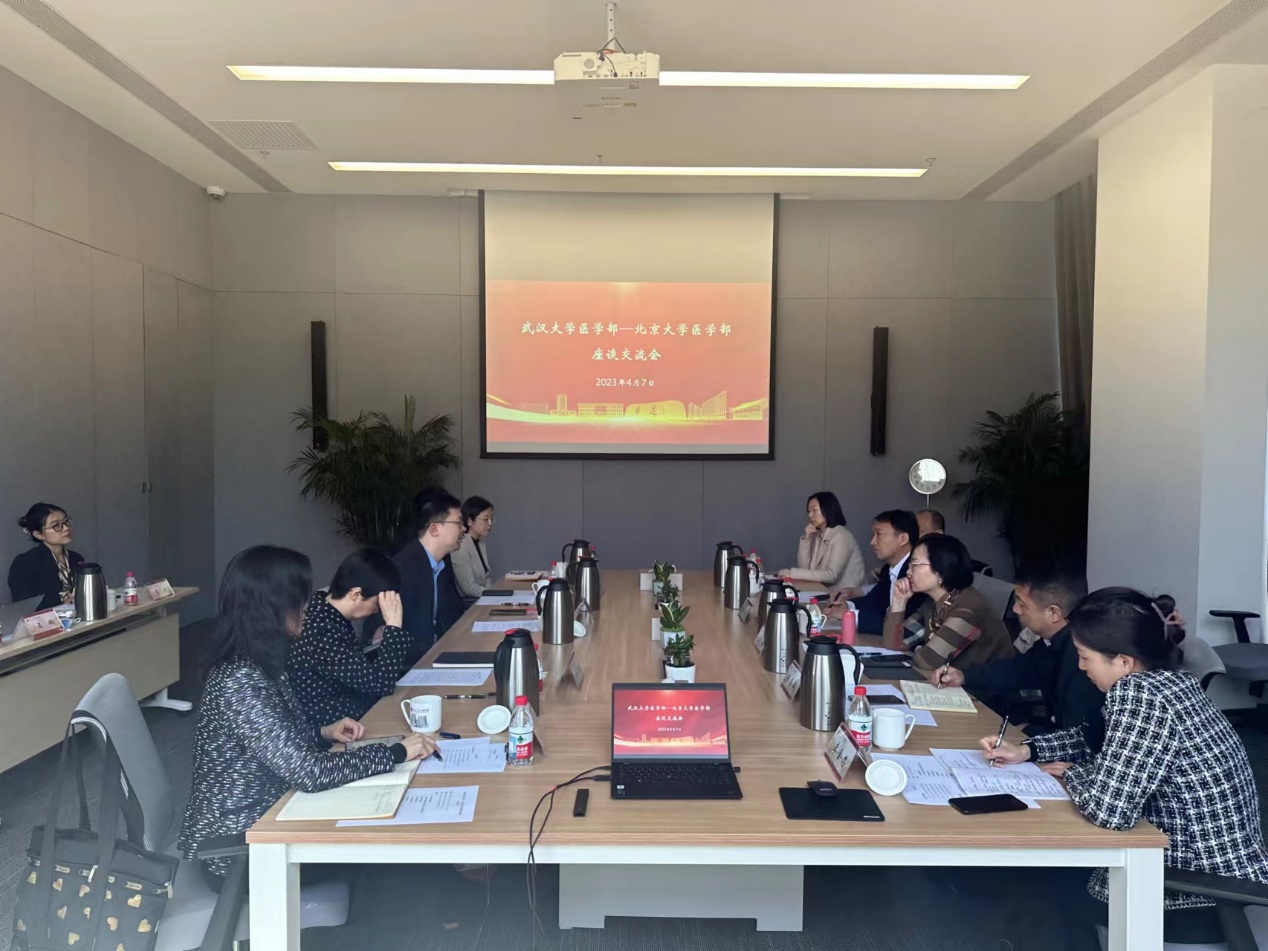副主任王嘉东整体介绍了加强医学内涵式高质量发展的北大模式,教育处、人事处、国内合作办、学科办等部门负责人,分别就本科教学、人事管理、交流合作、学科建设等方面进行了经验分享,双方就相关工作进行了深入探讨。