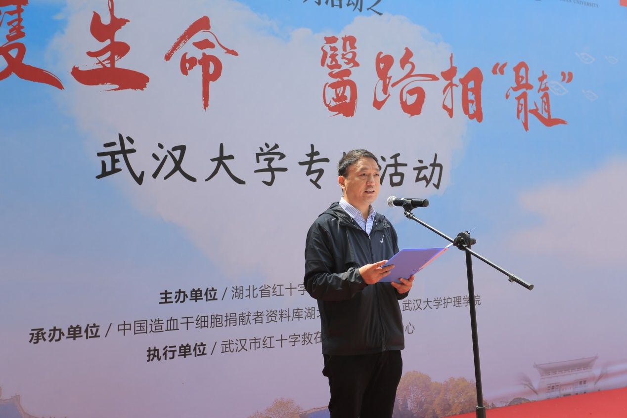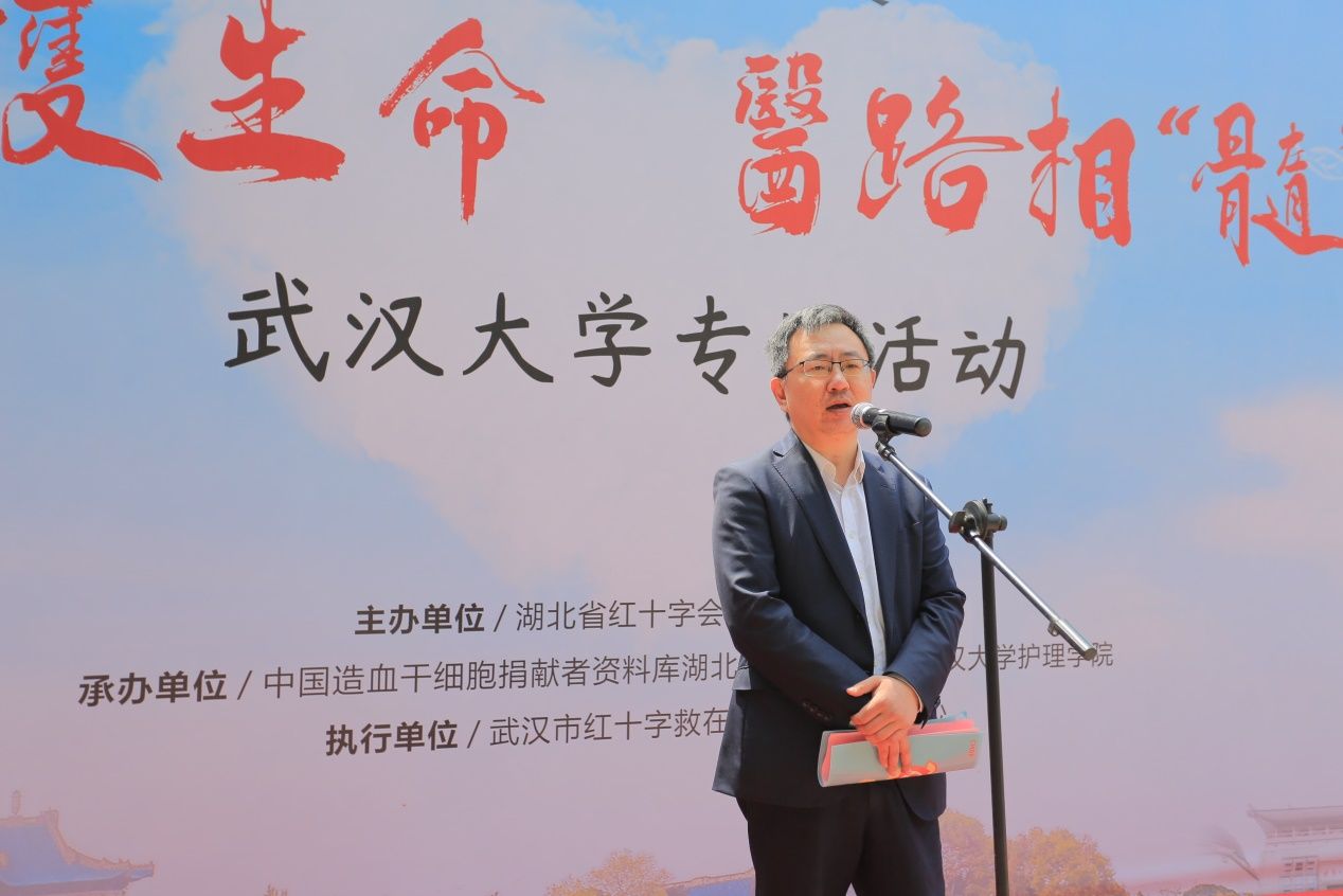 长期以来积极组织各种社会公益实践活动,武大学子积极参与造血干细胞捐献活动的行为,展现出了武大人胸怀天下的赤子情怀,勇于担当的精神气概,自强自立的社会担当,大德大爱的执著追求,生动诠释了“自强、弘毅、求是、拓新”的武大精神,与“人道、博爱、奉献”的红十字精神相得益彰。他指出,省红十字会系列活动走进高校非常必要,号召广大学子行动起来,树立为他人服务的思想,发扬团结互助的友爱精神,将武大精神与红十字精神充分结合起来,努力成长为服务于国家民族的中流砥柱。