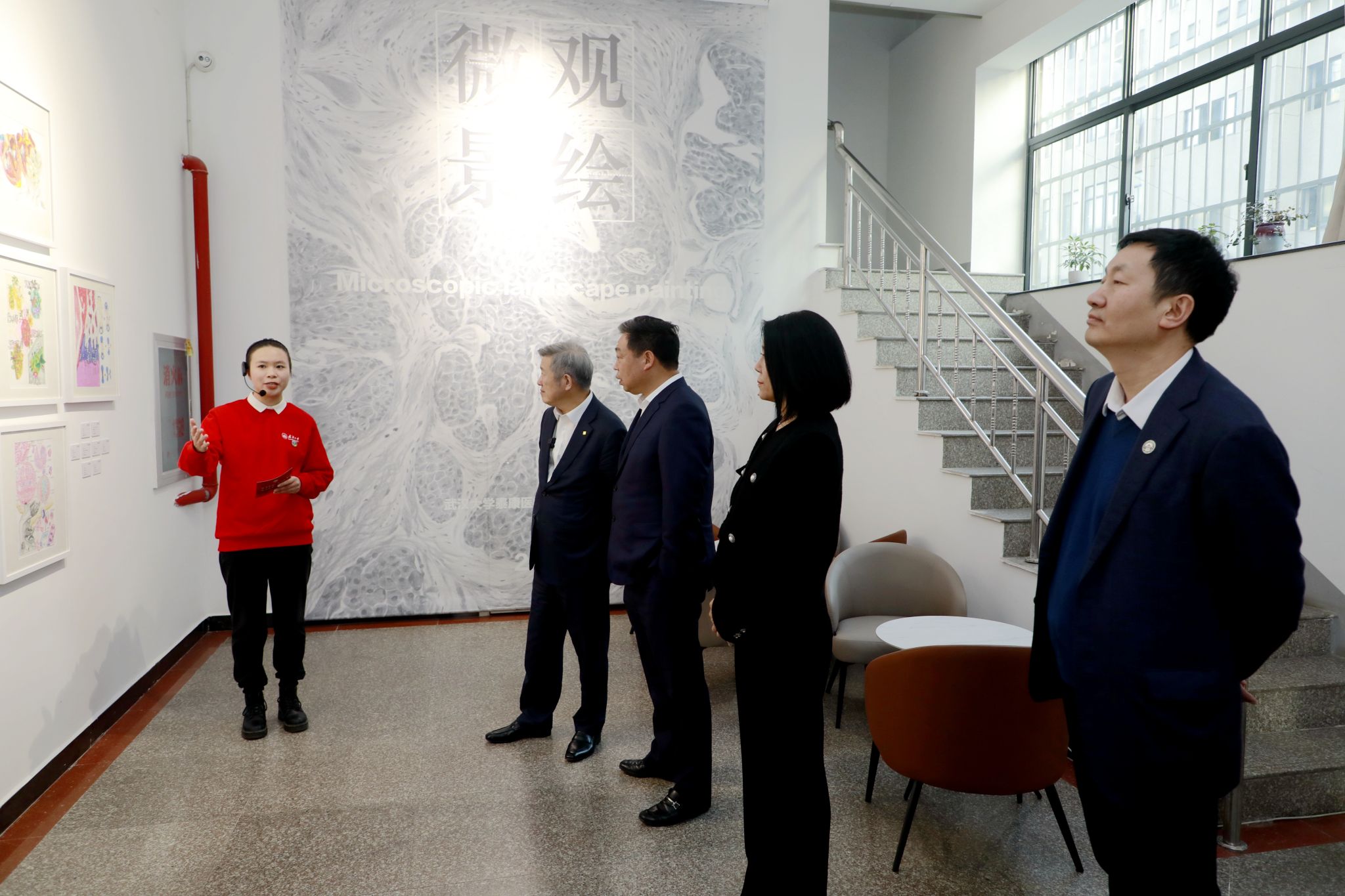 (陈东升一行参观“微观景绘”医学创意绘图展)