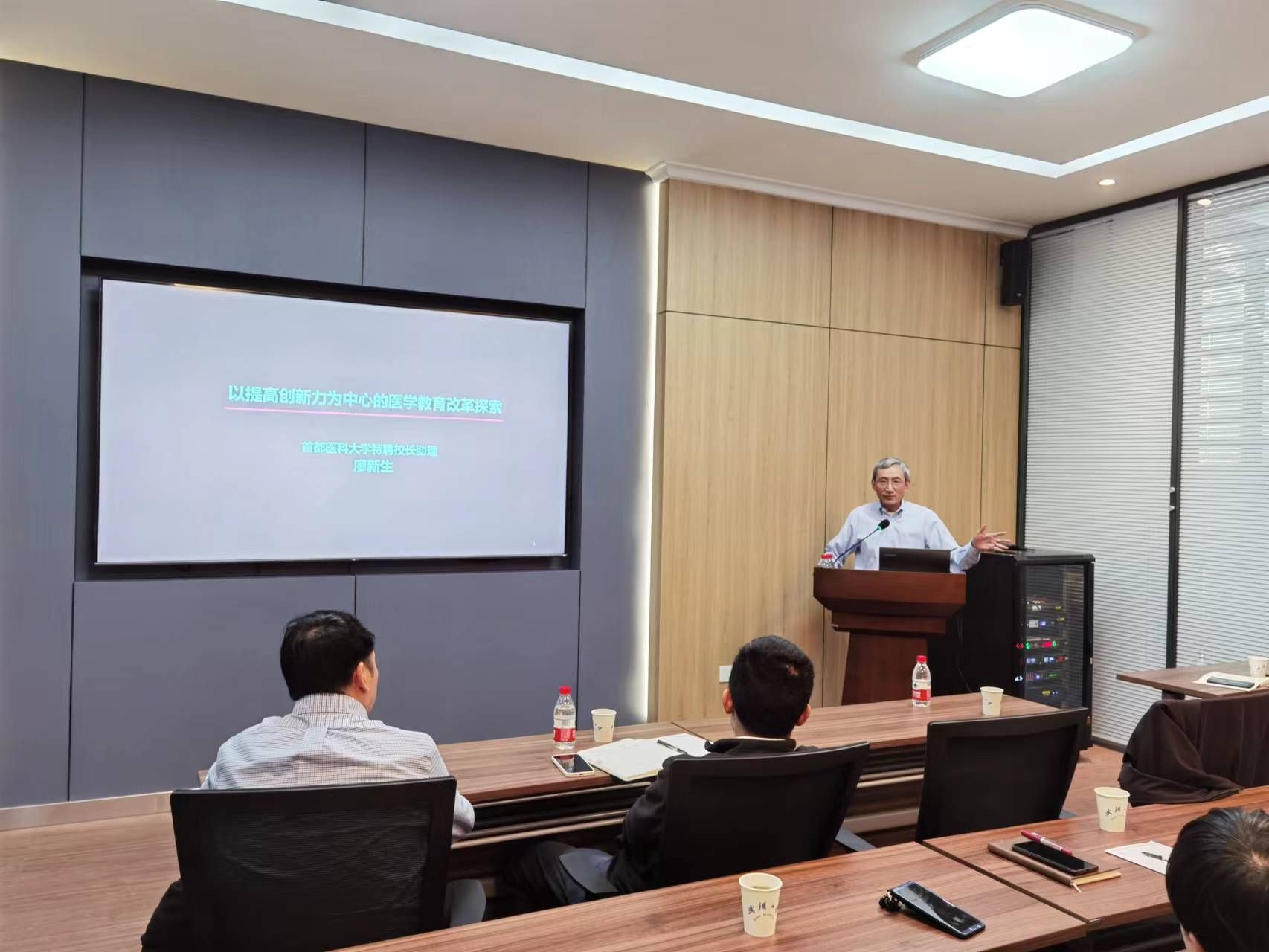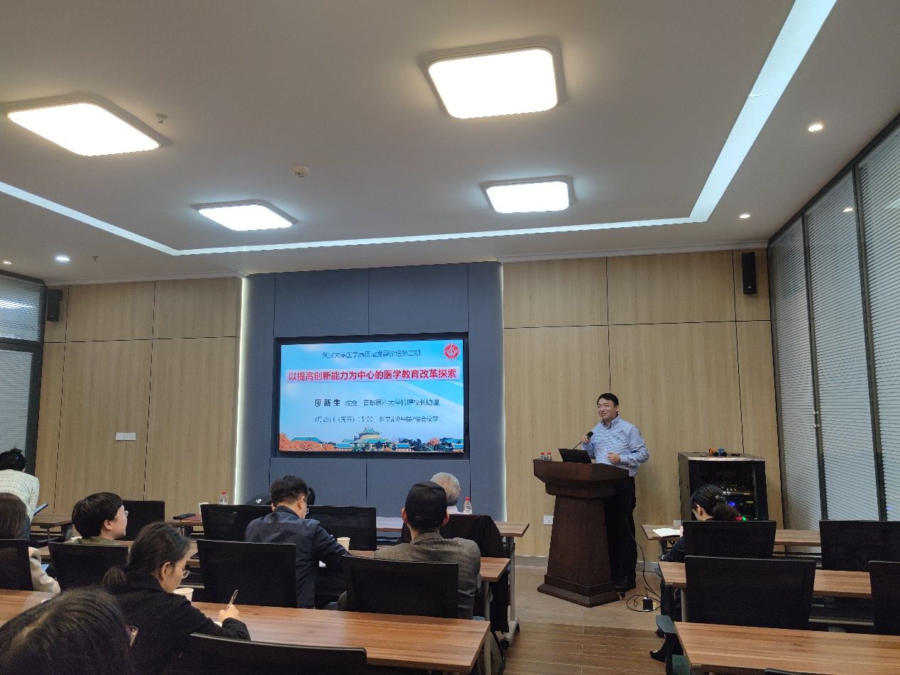 本期论坛特邀首都医科大学特聘校长助理廖新生教授作报告,报告主题为“以提高创新力为中心的医学教育改革探索”。廖新生教授毕业于原华西医科大学,入职首都医科大学前在海外长期从事医学临床实践和肿瘤免疫研究,具有丰富的医学人才培养经验。廖教授主要介绍了首都医科大学的特色医学人才培养模式——阶平班的培养方案,他强调了培养创新能力、自学以及终身学习能力、逻辑能力和批判性思维的重要性,并在课程设计、考试安排和规培改革等方面进行了详细分享。论坛上,各位参会老师积极围绕“如何提高医学教育的创新能力”这一话题展开精彩讨论,为进一步优化医学教育培养方案建言献策。