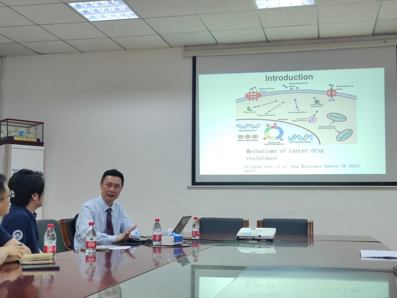 在报告中,陈哲生教授首先介绍了分子层面的肿瘤治疗耐药性机理,并展示了纳米材料等新型材料作为载体克服肿瘤耐药的应用前景。此外,陈教授以期刊主编的视角向大家分享了高质量文章的写作经验与心得。论坛现场,师生踊跃提问,围绕“如何克服肿瘤耐药性”“如何在论文中清晰展现研究成果”等问题开展了深入交流,现场气氛热烈。