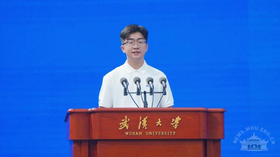 作为在校生代表,数学与统计学院何斌、艺术学院王小果、水利水电学院赵鑫龙、公共卫生学院陈雅霖共同欢迎和祝福2024级新生:“初入珞珈,愿学弟学妹们心怀青春热血,不失勇担使命的自强之魂;坚守家国情怀,不失矢心报国的弘毅之志;独具拙见真知,不失崇尚真理的求是之风;葆有不竭勇气,不失敢为人先的拓新之力。”