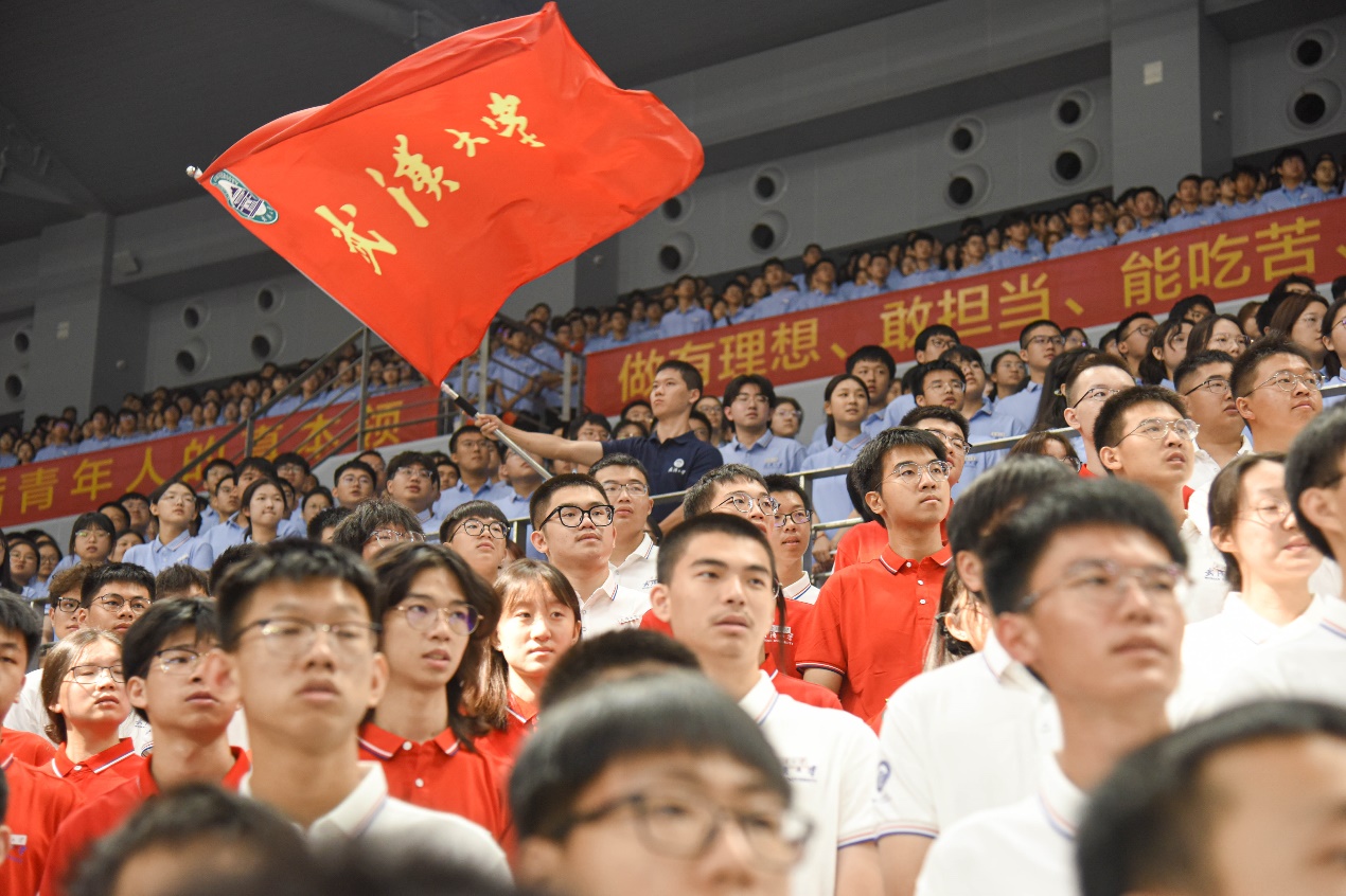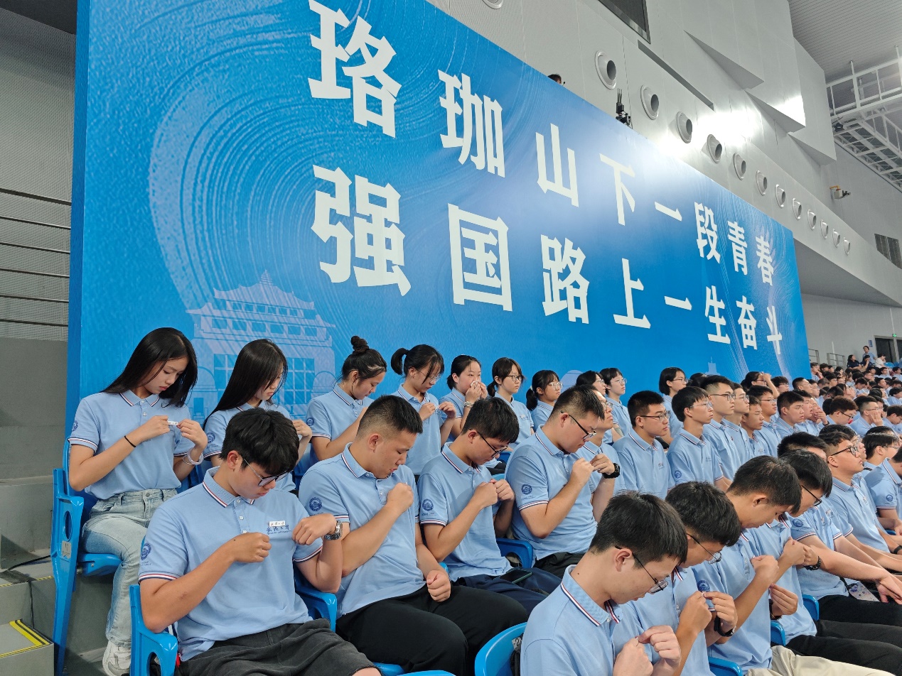 2024级本科新生开学典礼在卓尔体育馆举行,在歌曲《强国一代有我在》的合唱伴奏下,学生方阵托起巨幅国旗,在新中国成立75周年之际,共同许下庄严承诺。