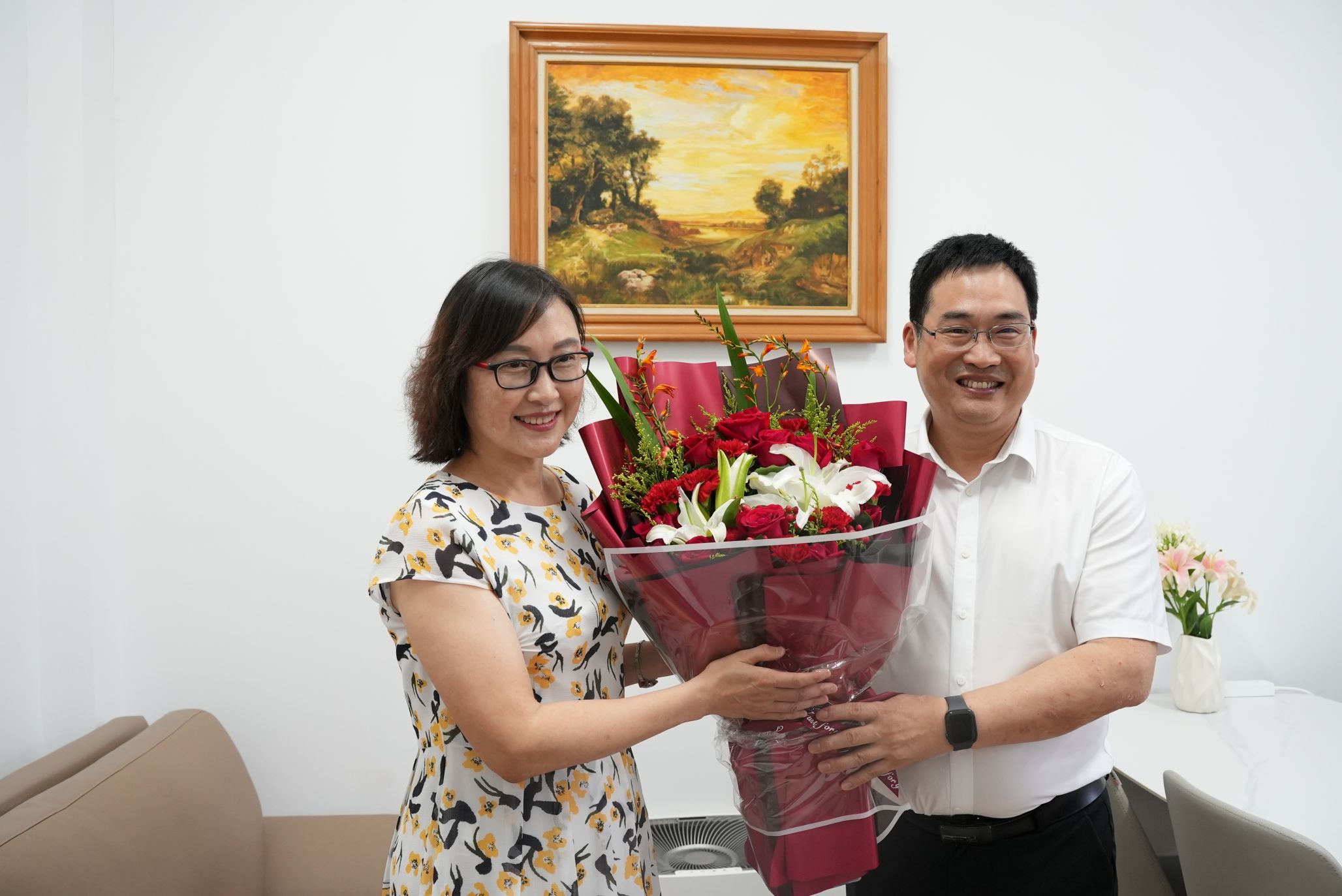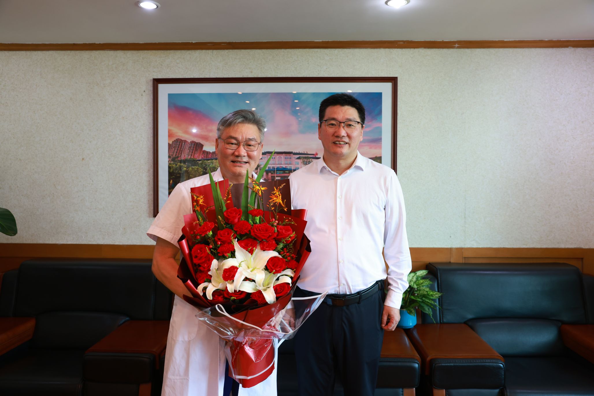 张平文前往生命科学学院慰问于丹教授,为于丹送上鲜花,围绕学校发展、学科建设、人才培养等与于丹进行了深入交流。于丹对学校的关心、支持表达了感谢,表示未来将再接再厉,继续在为党育人,为国育才的教育事业中贡献力量。