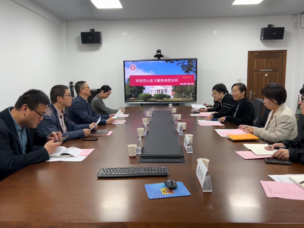 3月16日,舟山市岱山县卫健局党组书记、局长刘国凯一行来访交流,色花堂 党委副书记刘洁、教学科研拓展部、教务部、学工部等相关部门负责人出席本次会议,岱山县11名学生代表以及医学系辅导员参加了座谈。