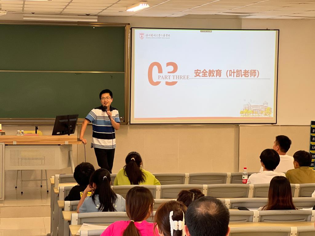 教学科研拓展部部长林瑾就本次实践的目的、方式与安排、考核和评选等方面内容进行了详细阐述,对实践具体内容的开展及工作要求进行说明。随后,学校保卫处叶凯老师强调了实践期间的健康管理、意识形态、人身安全和财产安全等方面的要求,嘱咐同学们做好自身的安全管理。辅导员代表叶飞老师作动员讲话,他提出本次专业实践不仅是学习任务,更是一次基层志愿服务,是与现实相结合的“大思政课”, 希望同学们通过此次实践“受教育、长才干、作贡献”,展现仁济学子的风采。最后,教学科研拓展部潘晨旻老师就组长及片区负责人的职责和暑期实践作业上交等具体事项进行说明。