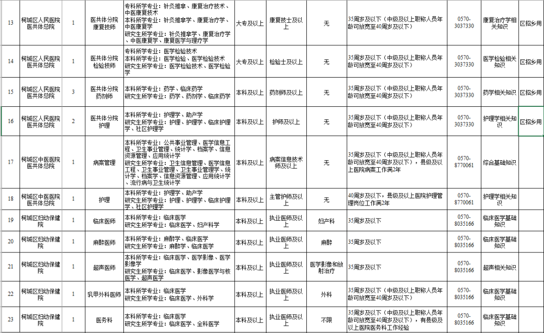 为加强柯城区医疗卫生人才队伍建设,经研究,决定面向社会公开招聘工作人员35名(其中柯城区疾病预防控制中心1名,柯城区人民医院医共体27名,柯城区中医医院医共体2名,柯城区妇幼保健院5名),现将有关招聘事项公告如下(请认真仔细阅读每一条文):