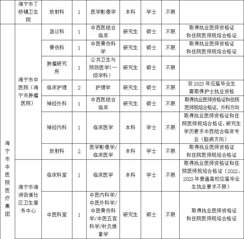 海宁市卫健系统公开招聘事业单位卫技人员71名,招聘岗位详见招聘岗位条件及计划表(附件1)。