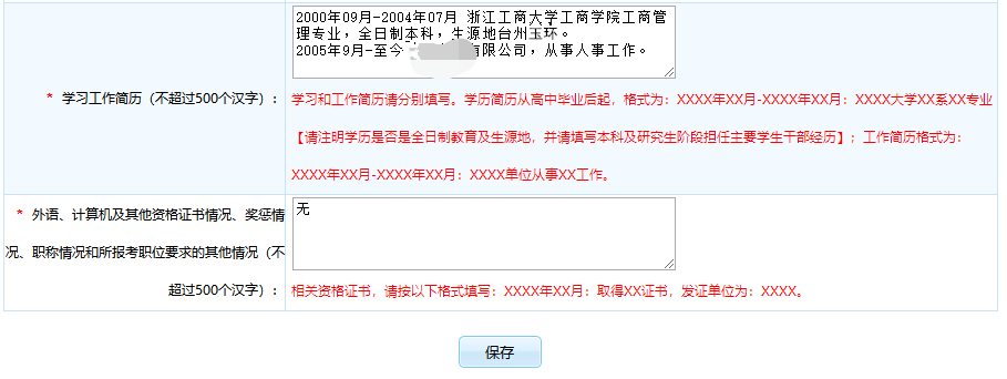 部分岗位要求从业(执业)资格证书及岗位所需的其他有关证书(证件、证明)的,请务必在“其他情况”中按正确的格式如实填写完整详细的信息。