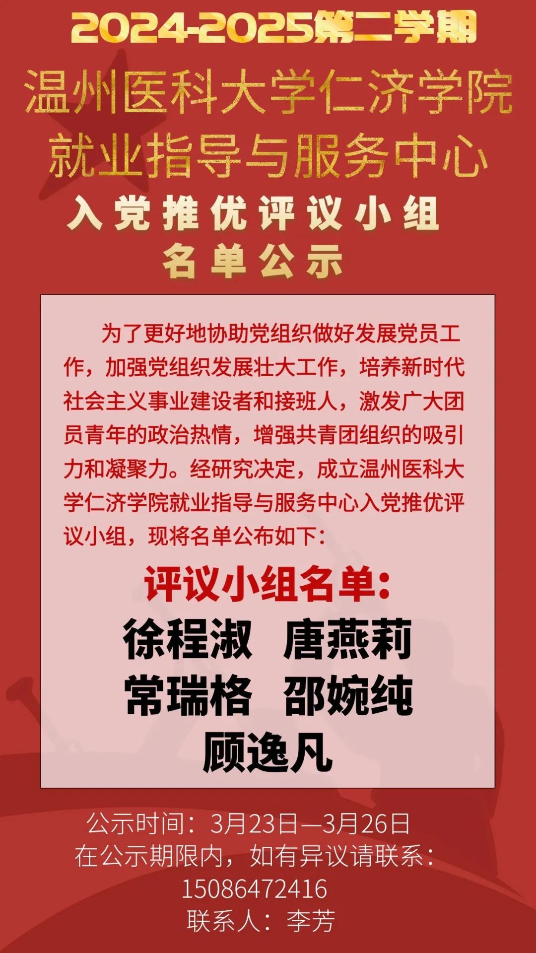 2024-2025第二学期色花堂 就业指导与服务中心入党推优评议小组名单公示