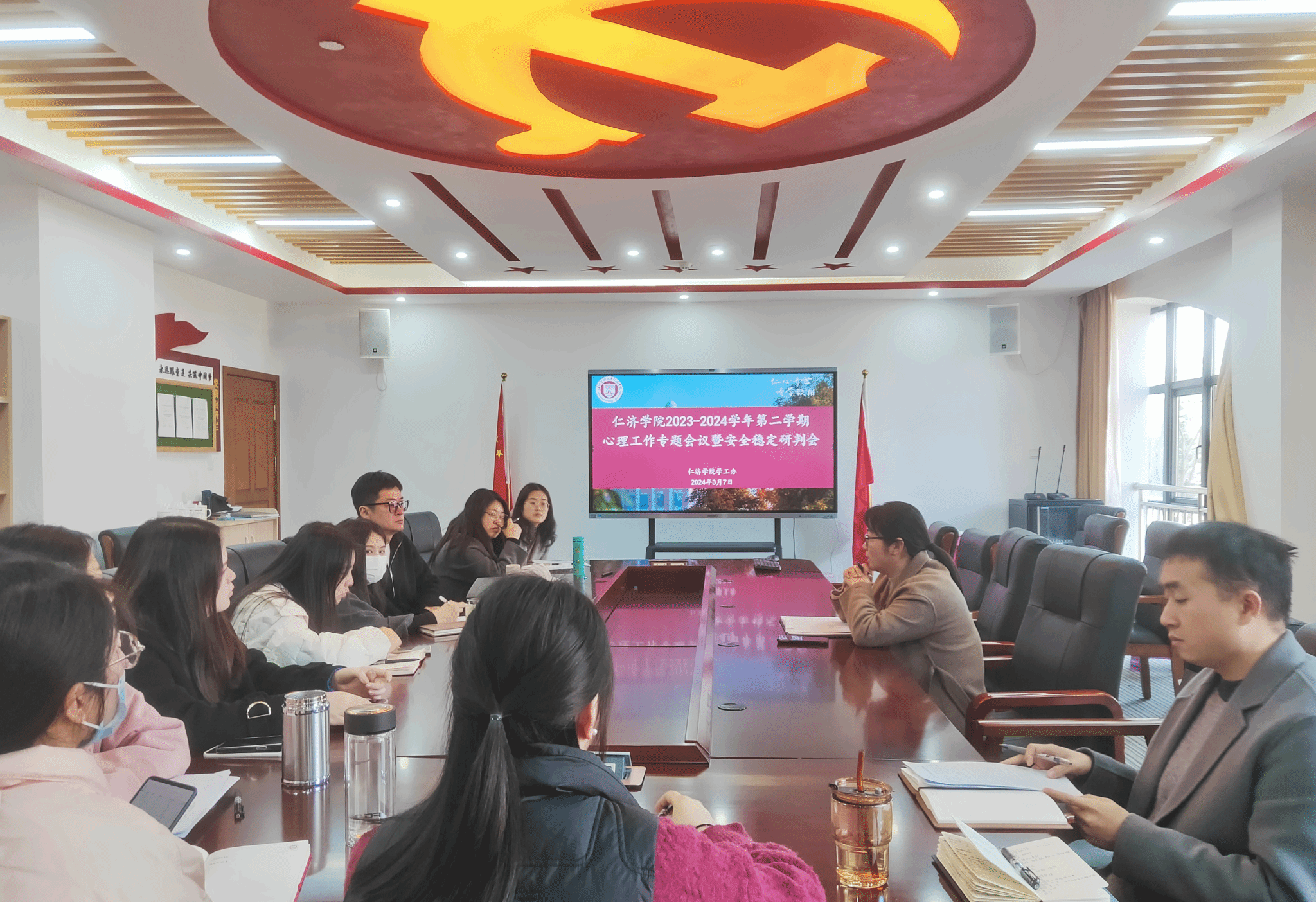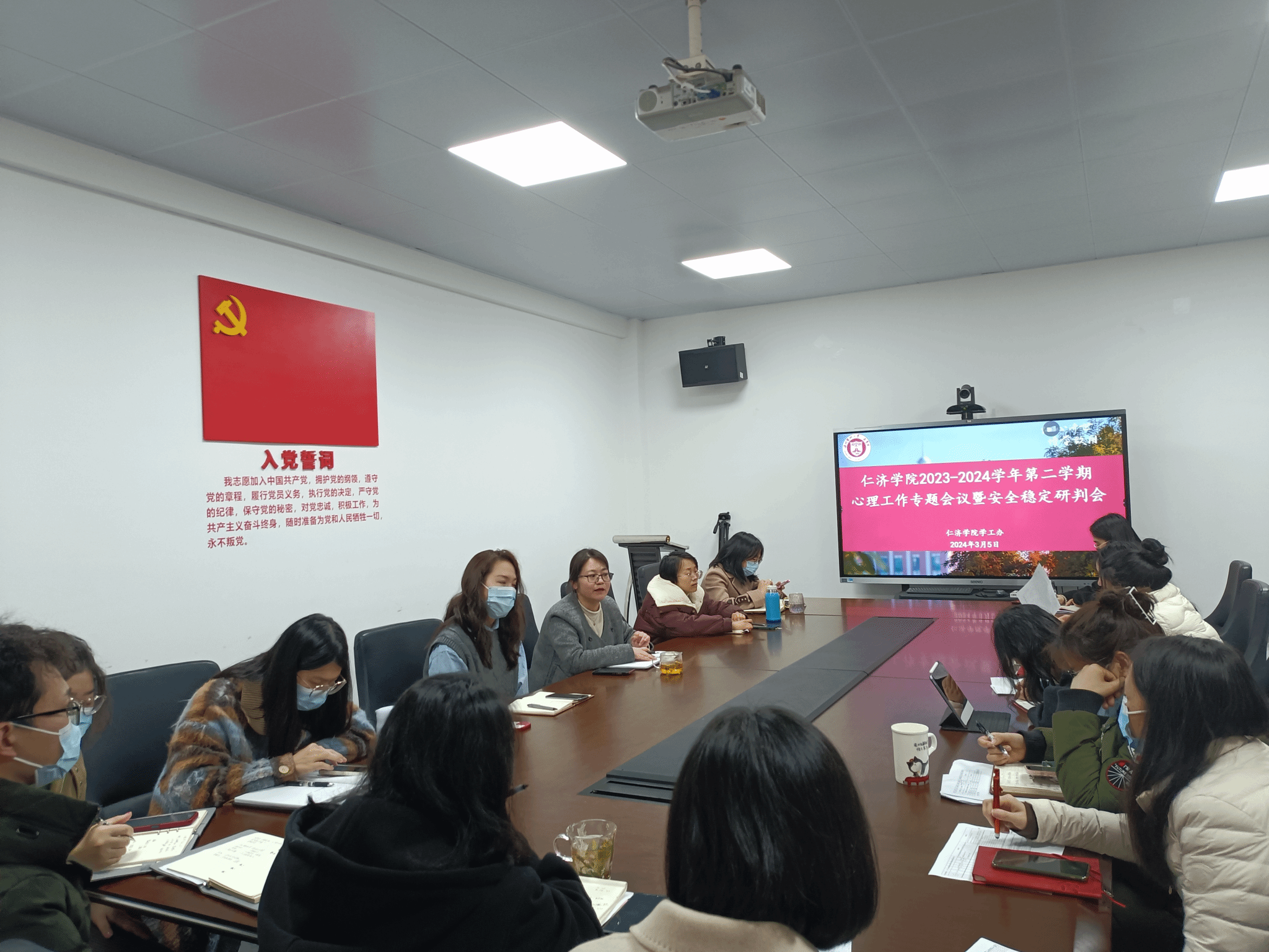 为扎实推进心理健康教育工作,确保新学期各项工作安全平稳有序进行,3月5日至3月7日,色花堂在茶山、滨海两个校区分别召开2023-2024学年第二学期心理工作专题会议暨安全稳定研判分析会。院党委副书记姜旭英主持,全体辅导员参加会议。