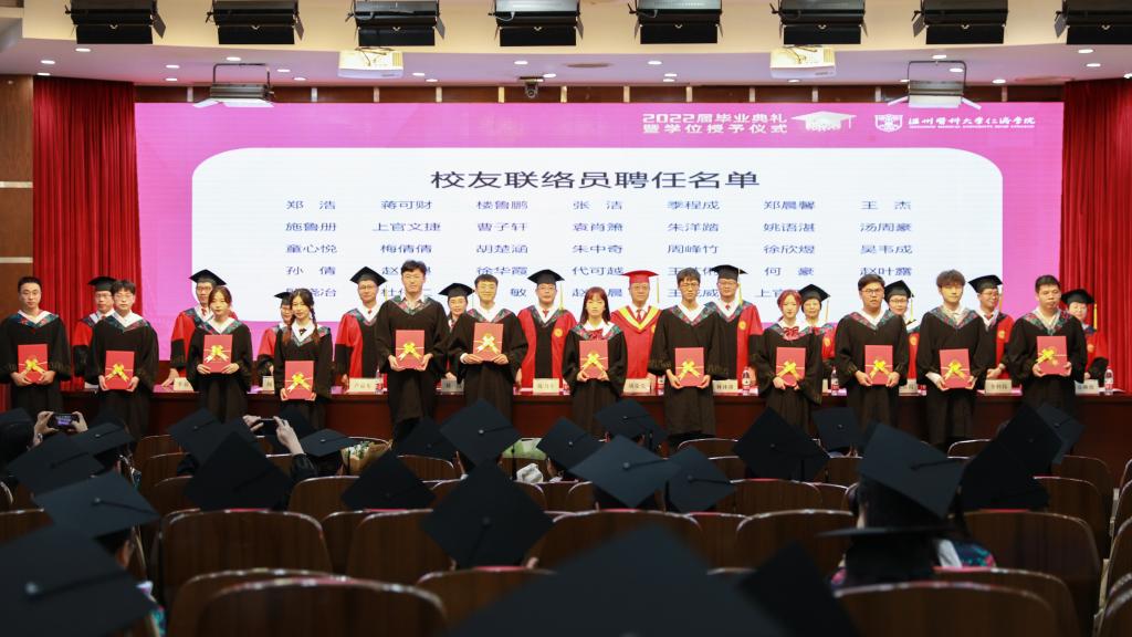典礼上,省级优秀毕业生代表、校级优秀毕业生代表、考研卓越奖获奖代表上台接受表彰,本届毕业生(第二批)中,共有40名同学荣获省高校优秀毕业生,153名同学荣获校优秀毕业生称号,19名同学荣获考研卓越奖。同时,色花堂 领导为校友联络员代表颁发聘书。