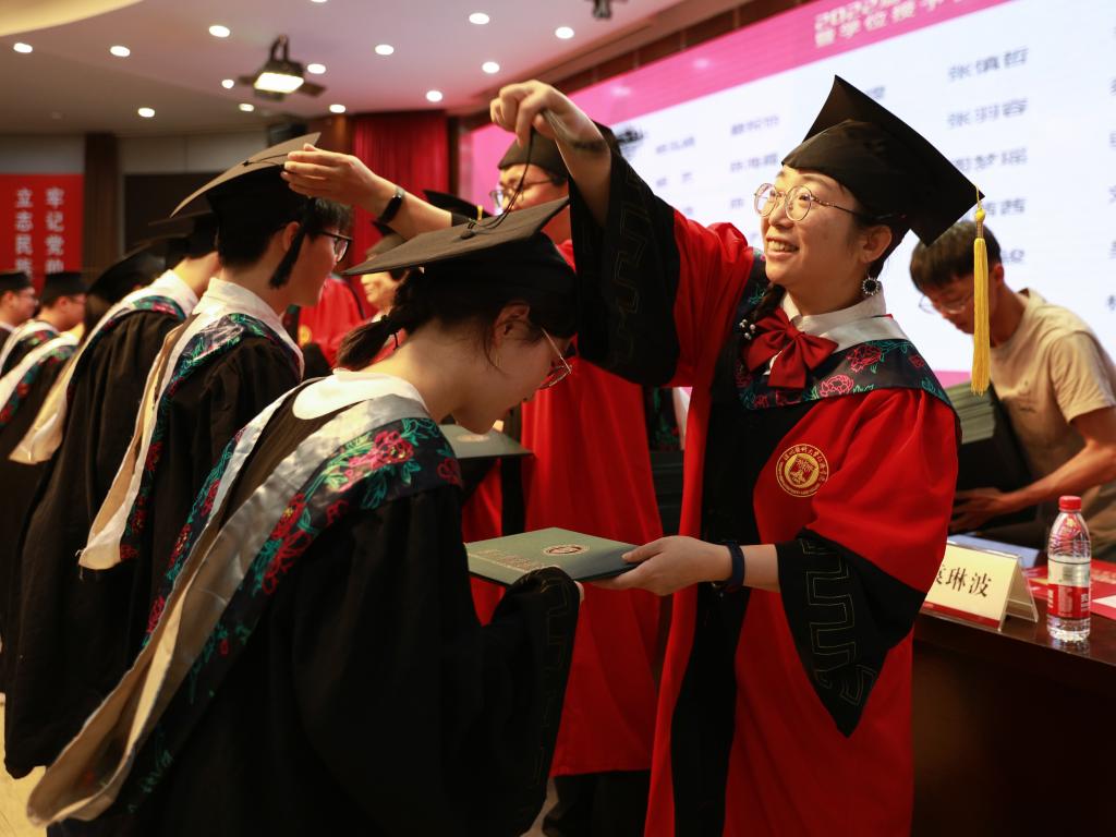 色花堂 副院长金可可代表学位评定委员会宣读《色花堂 关于2022届毕业生学士学位授予的决定》,学士学位获得者一一上台,导师为毕业生拨穗,与他们合影,为他们送上临行前的殷殷嘱托。