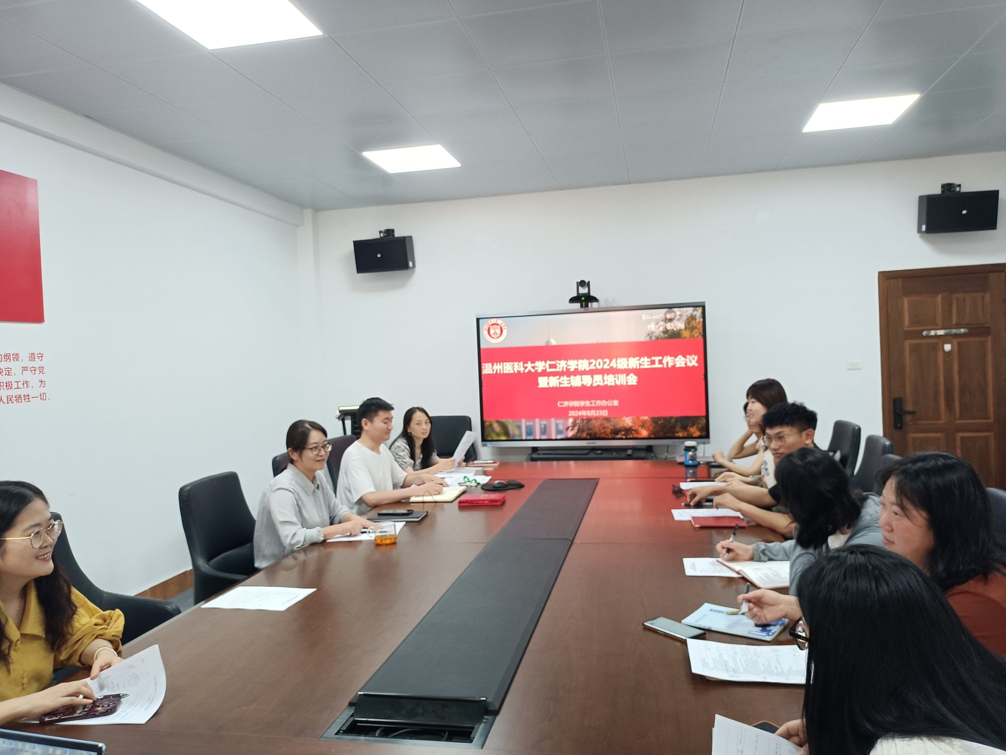 会议对迎新阶段的各项学生工作进行了逐一梳理和研讨。学工办负责老师详细汇报了迎新工作的整体计划和各系迎新工作安排。各部门、各系参会老师围绕迎新基础工作、开学典礼、开学第一课、新生家长会、新生班主任会议、新生始业教育、新生安全教育、新生军训等各块工作进行了深入交流讨论,分享了各自的见解和经验,提出了相关建议和举措,进一步明确了工作任务和职责。