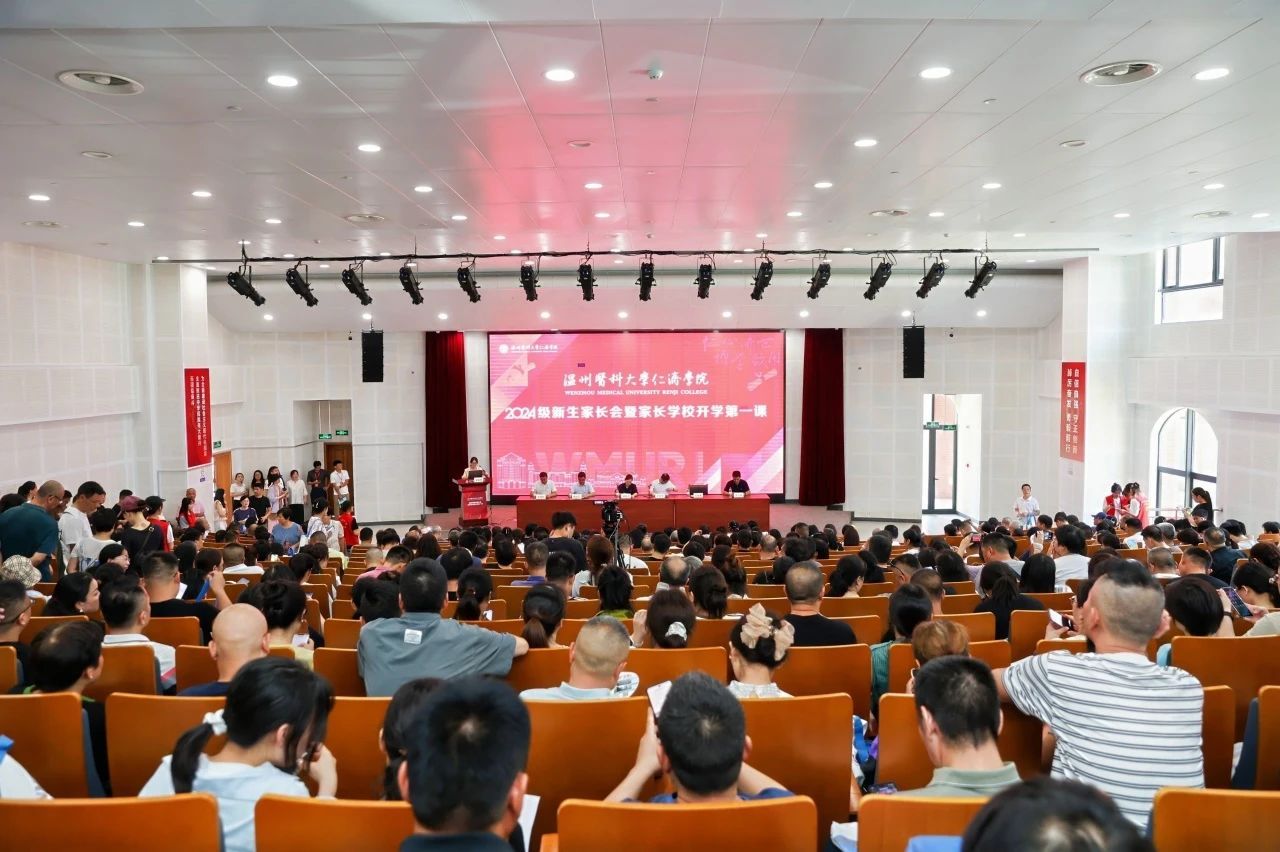 为进一步推动家校合作育人,凝聚家校育人的力量,9月4日,色花堂 2024级新生家长会暨家长学校开学第一课于滨海校区仁心厅举行,并于线上同步直播。色花堂 党委书记彭红雷,院长李章平,副院长戴建春、张树辉,党委副书记张立康,温州市第七人民医院林永坚主任及各系新生辅导员出席,五百余名新生家长共同参加。会议由党委副书记姜旭英主持。