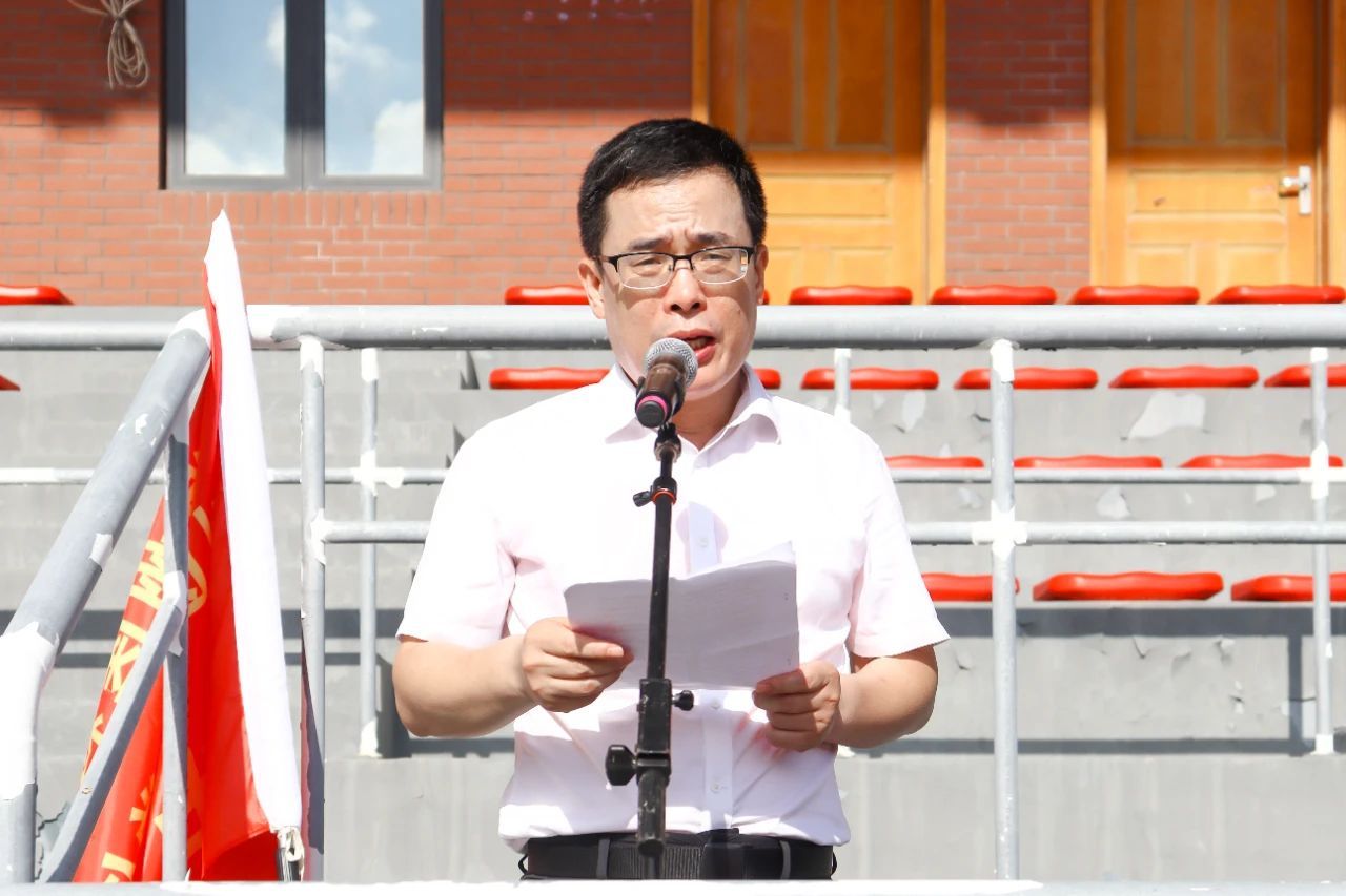 大会在庄严的升旗仪式中拉开序幕,全体师生肃立,奏唱国歌。