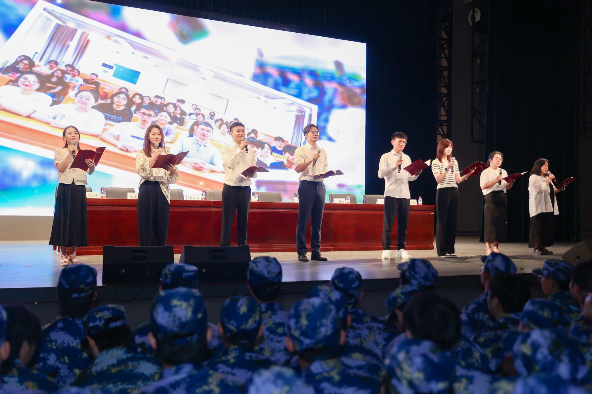 典礼开始前,学长学姐们以曼妙的舞蹈《遇见》与动感十足的小组唱《改变自己》点燃了现场气氛。新生辅导员们通过《不负青春,逐梦前行》集体朗诵向新生深情寄语。全体师生肃立,典礼在庄严的国歌声中正式开始。