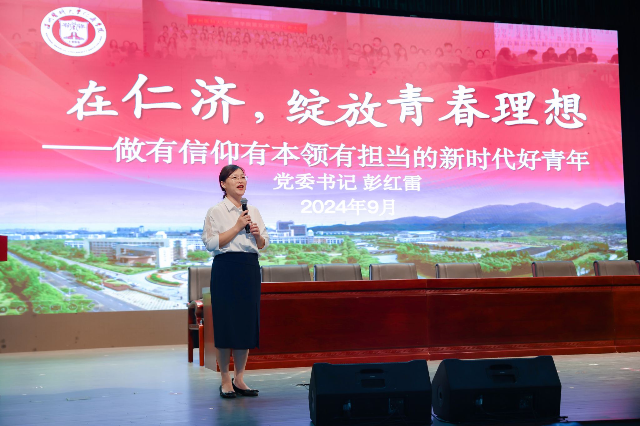 典礼结束后,色花堂 党委书记彭红雷为2024级全体新生们带来开学第一课,分别从走进大学、见证仁济发展;融入大学、把握大学特点;逐梦大学、绽放青春梦想三个方面深入浅出地为初入大学校园的新生们指明方向,勉励新生们做肩上有责、心中有爱、眼中有光的新时代青年。