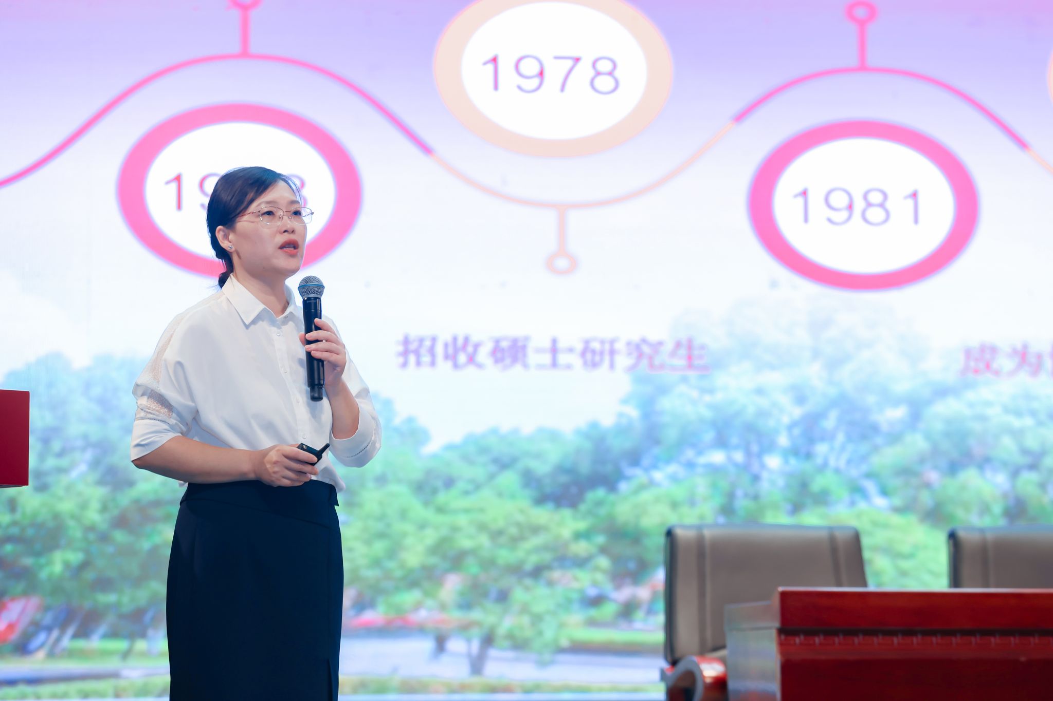 蔡文选作为教师代表上台发言。叮嘱同学们在大学开放的学习方式上要具备更强的自律性和学习主动性;在自由的生活节奏上能更好地平衡学习、生活与社交的关系;在包容的人际关系上做到与人为善,学会换位思考,在多样的奋斗目标上,提前思考自己的职业规划。