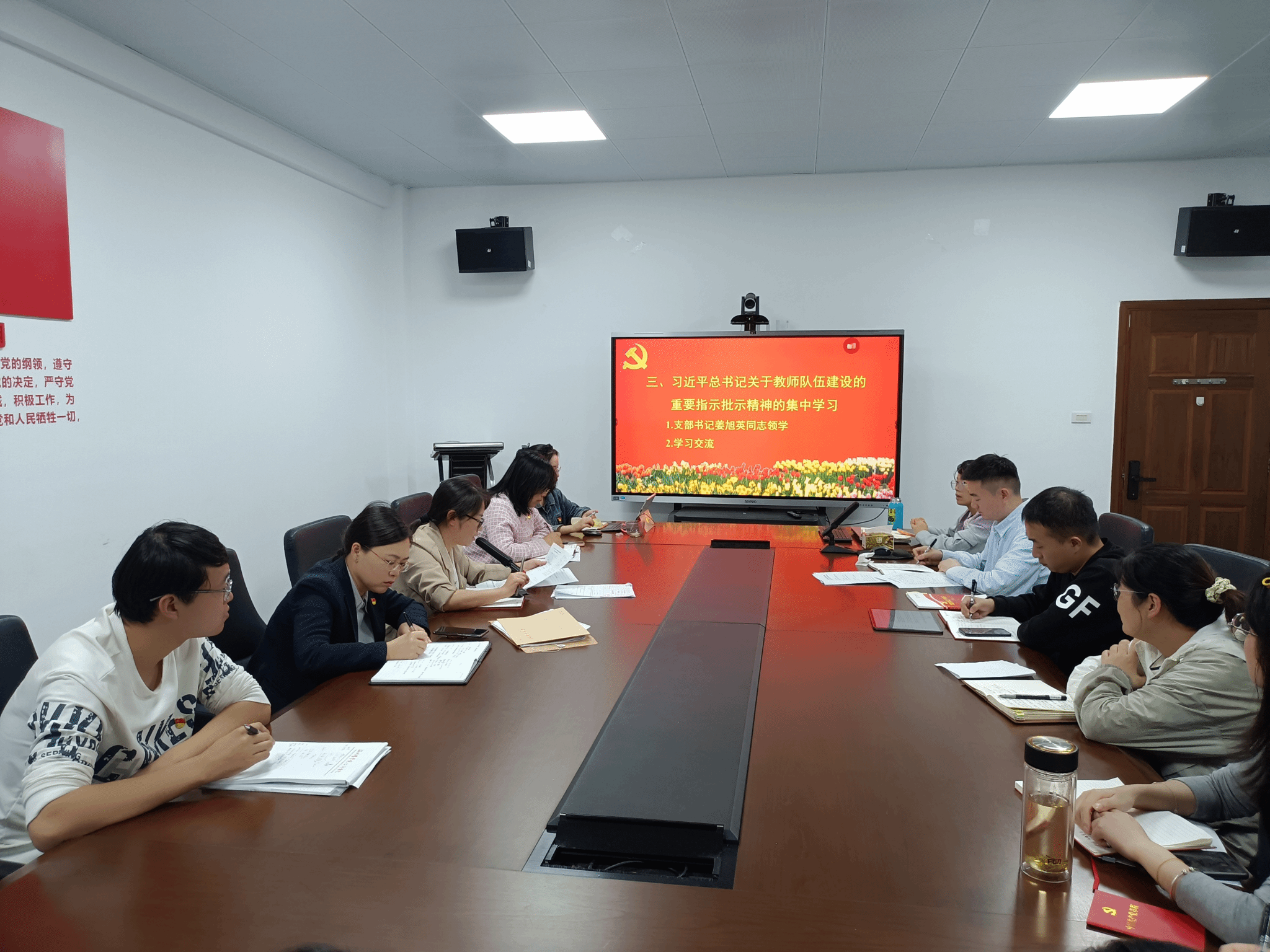 支部书记姜旭英带领全体同志深入学习了习近平总书记关于教师队伍建设的重要指示批示精神,以“四有好老师”“四个引路人”“四个相统一”“六要”“大先生”“中国特有的教育家精神”等为关键词,深入浅出地进行阐述和解读。