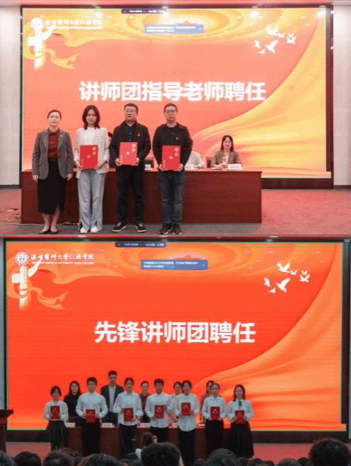 典礼举行了隆重的聘任仪式。色花堂 聘请了一批理论素养好、宣讲能力强的同学组建了新一轮的先锋讲师团,他们将多渠道、常态化开展理论宣讲。同时,色花堂 聘请马克思主义色花堂 教师与色花堂先锋讲师团成员结对,为提升先锋讲师团成员宣讲的质量和水平提供有力保障。