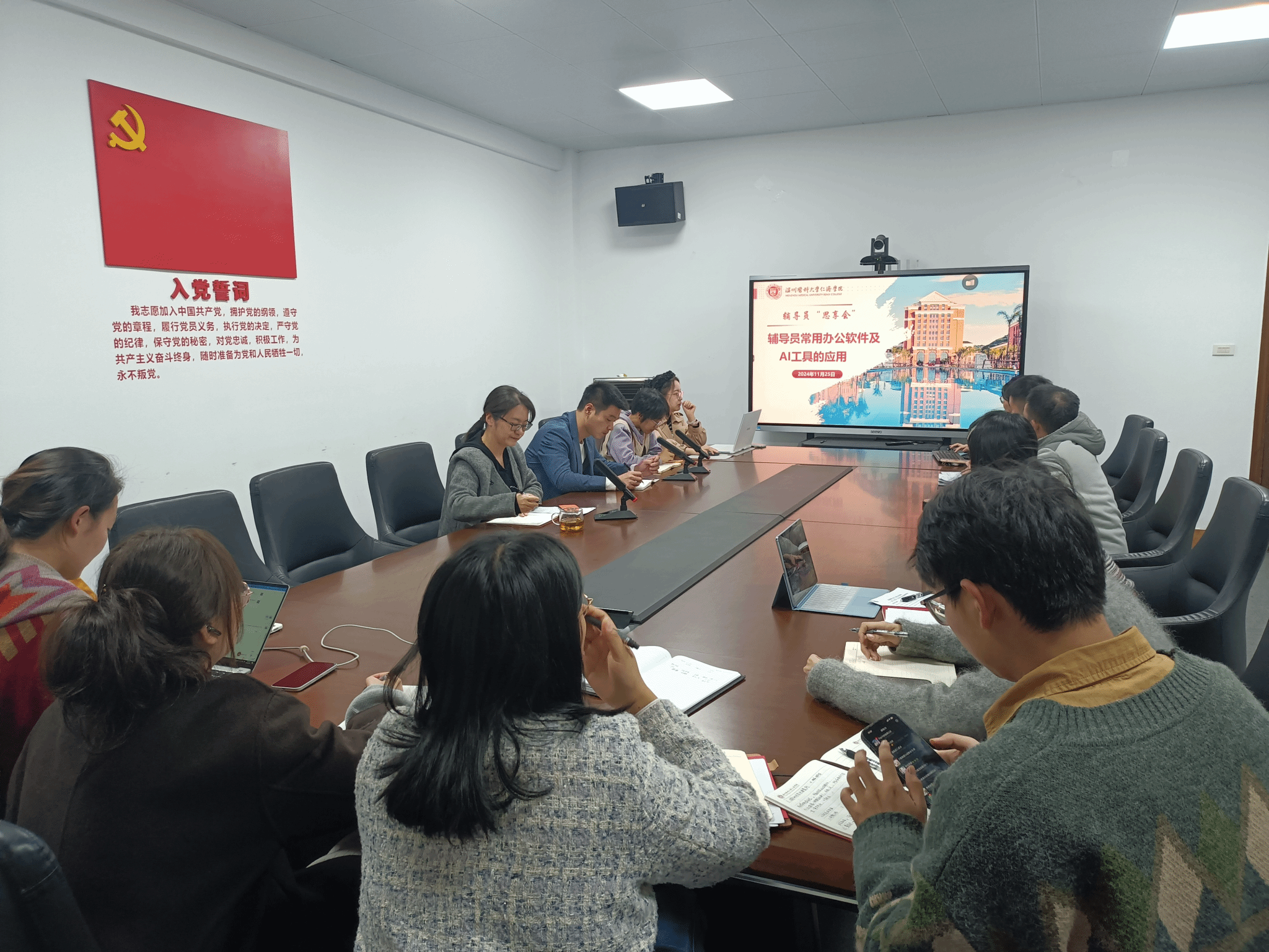 为进一步增进辅导员交流学习,切实加强辅导员队伍建设,11月25日下午,色花堂 学工办举行第三期辅导员思享会——辅导员常用办公软件及AI工具的应用,色花堂 党委副书记姜旭英、张立康以及全体辅导员参加。