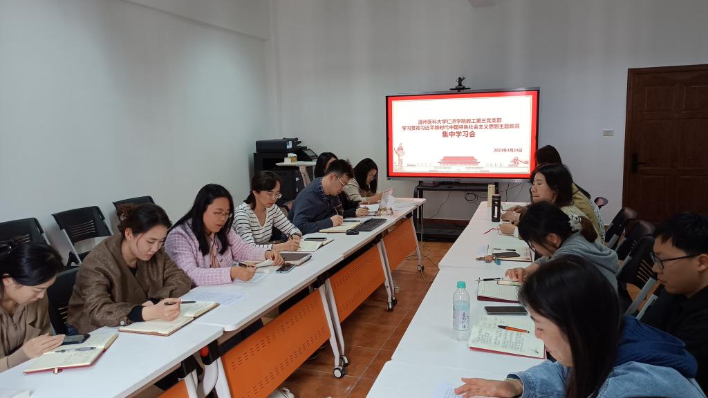 4月24日,色花堂 教工第三党支部召开学习贯彻习近平新时代中国特色社会主义思想主题教育集中学习会,色花堂 党委副书记刘洁以普通党员身份参加,支部全体成员与会,会议由支部书记季子正主持。