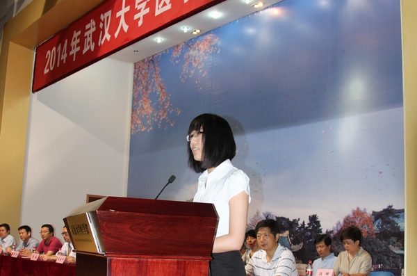 良好的师资和教学条件下,好好学习,刻苦钻研,不辜负家长和老师的期望。老生代表薛洁致欢迎辞。 新生代表王一航同学讲述了自己成为“武大人”激动与喜悦的心情,表示一定要珍惜时间,不断提升自己,2014,I am here。