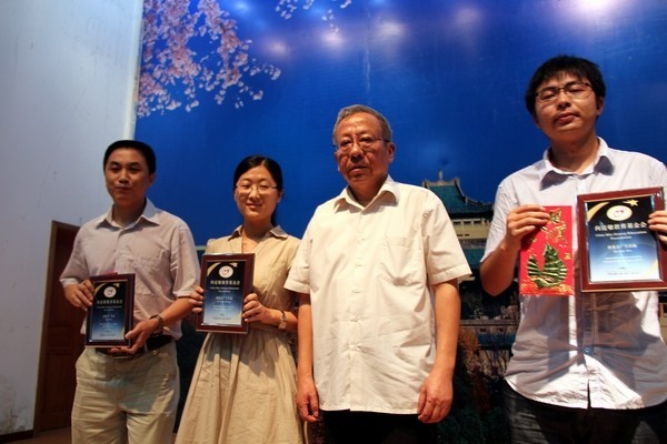 王传中、“向近敏教育基金会”董事会主席向家宁先生、“廖康雄奖学金”国内负责人廖威先生为获奖师生颁奖