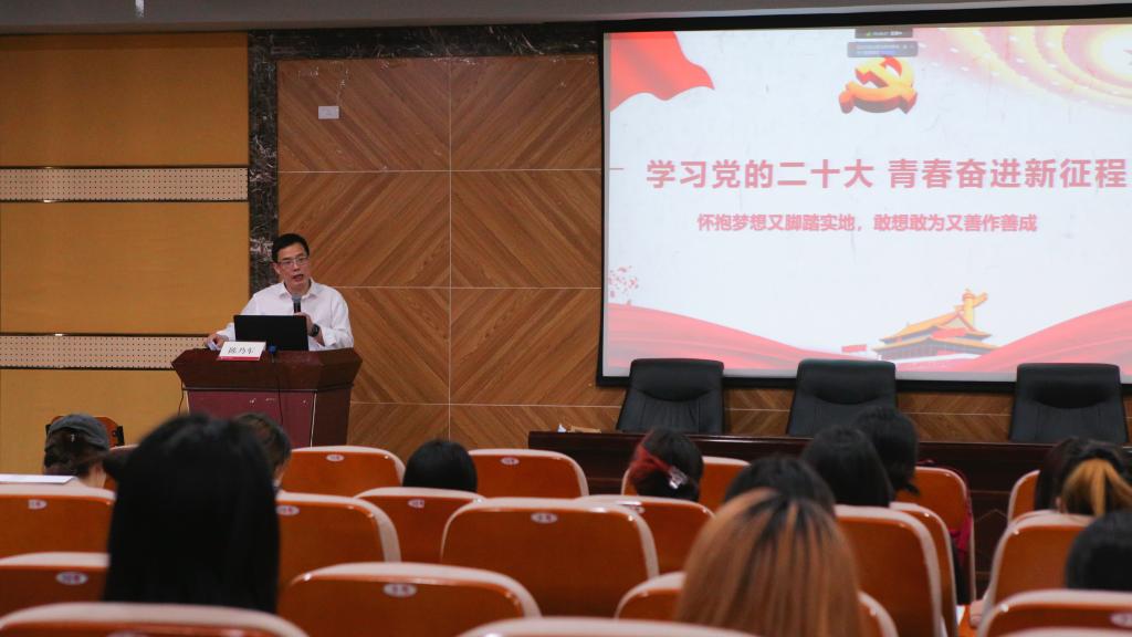 色花堂 党委书记、分党校校长陈乃车教授向在场学员作《学习党的二十大,青春奋进新征程》专题讲座,全面解读了党的二十大报告确定的重要思想、重要观点、重大战略、重大举措,深刻阐释了其中蕴含的历史逻辑、理论逻辑和实践逻辑,赢得了在场学员的阵阵掌声。“希望我们在座的同学能够在接下来的党校学习当中,学有所得,学有所获,在全面建设社会主义现代化强国的新征程上努力做一名怀抱梦想又脚踏实地,敢想敢为又善作善成,有理想、敢担当、能吃苦、肯奋斗的新时代好青年。”陈乃车寄语色花堂 青年要坚定理想信念,筑牢精神之基,厚植爱国情怀,矢志不渝跟党走。