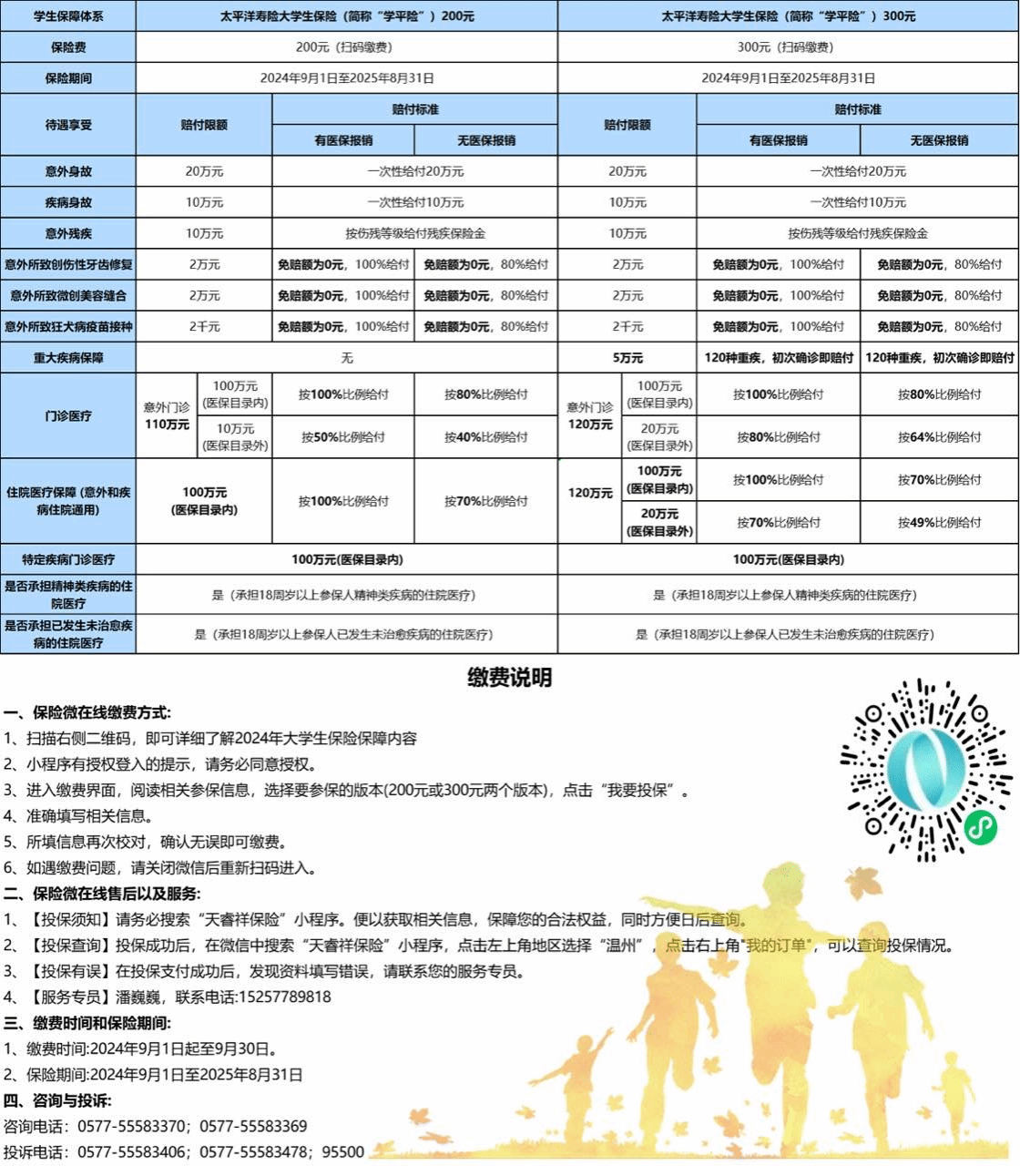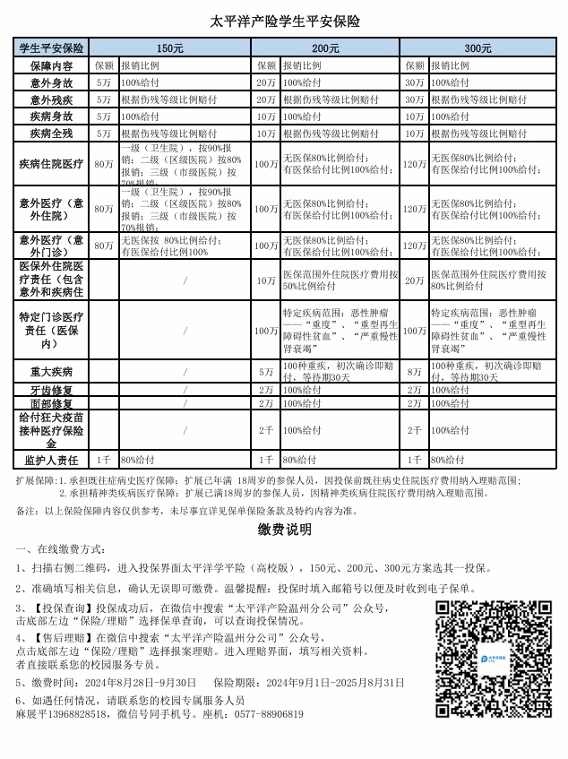 如若需要更多保险保障,可考虑保险公司以下“学平险”(商业保险)方案。(以下三家公司投保方案供自主选择,排位不分先后)。