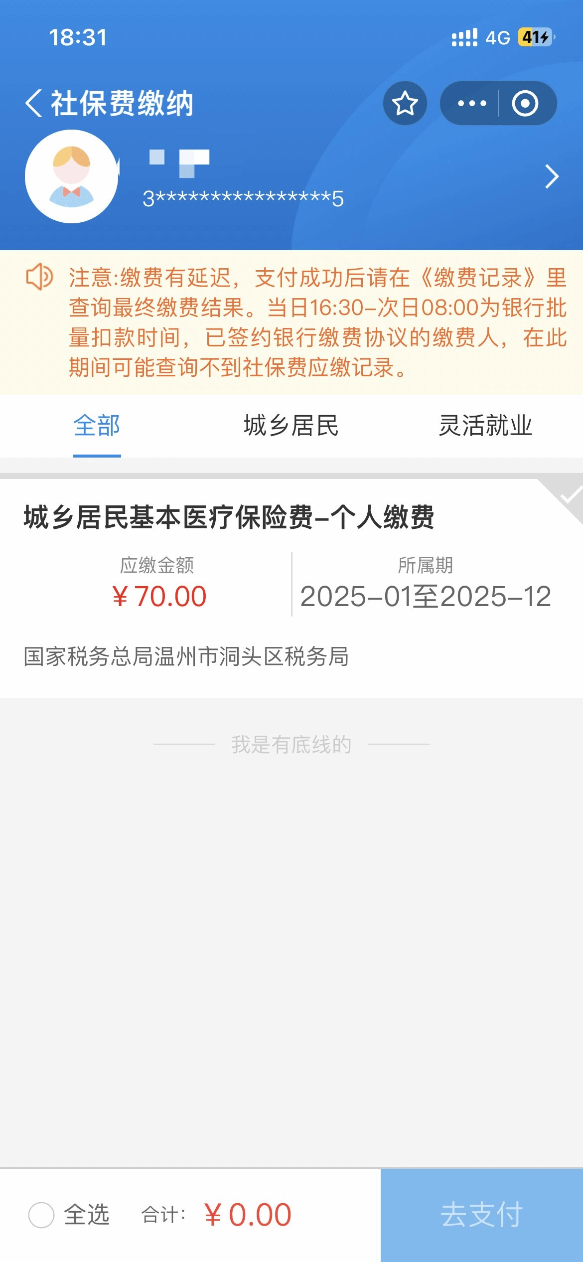 2.支付宝扫码后会出现以下支付页面,微信扫码需要先添加人员信息后方会出现缴费页面,请仔细核对缴费金额为70元后再付款。