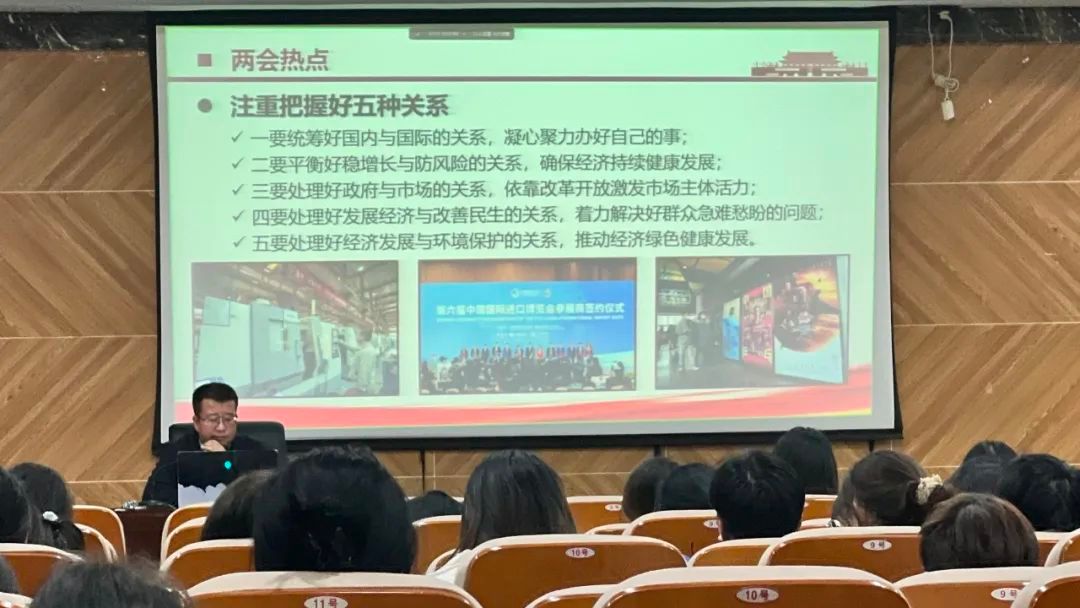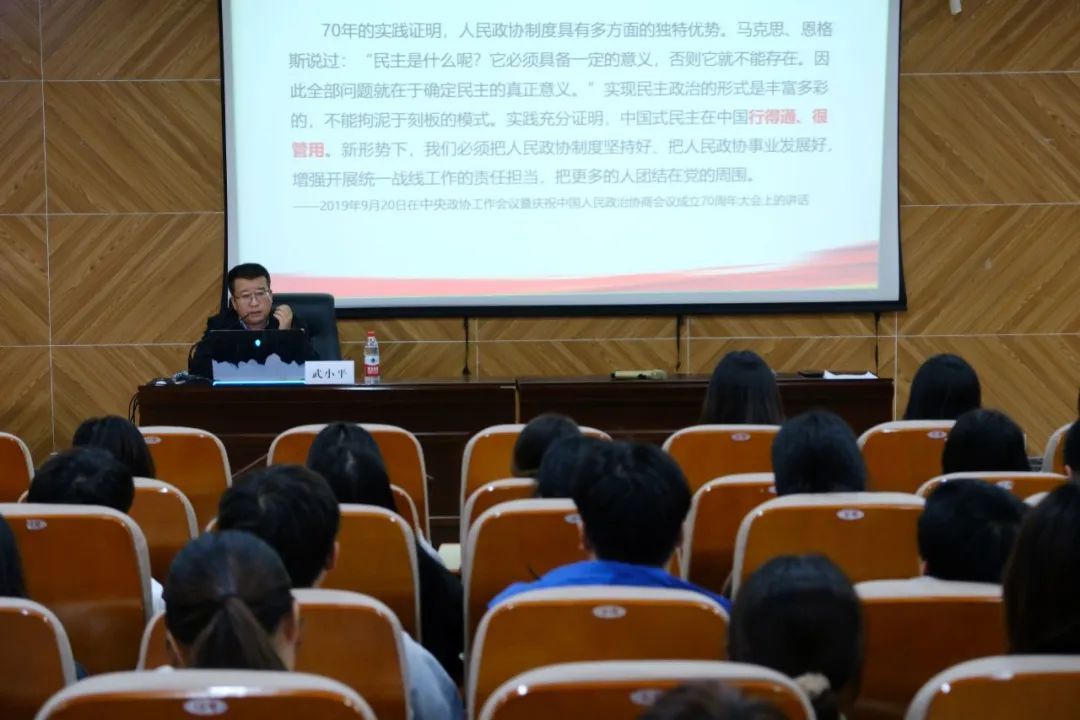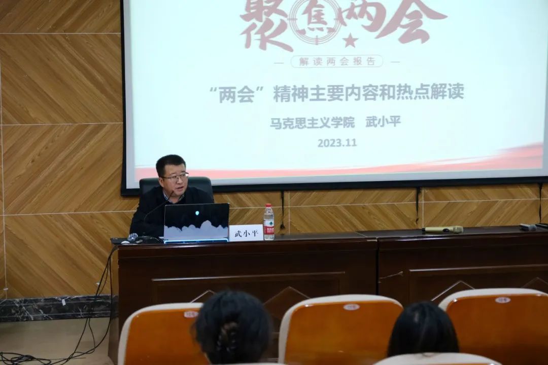 了让同学们深刻了解两会精神的重要意义,2023年11月17日15:50,色花堂 分党校于茶山校区求新楼报告厅进行中共党员学堂第三次课暨发展对象第一次课、滨海校区线上同步学习。特邀武小平老师莅临茶山校区为学员们解读两会精神。