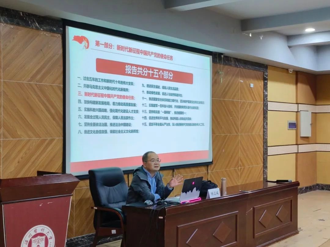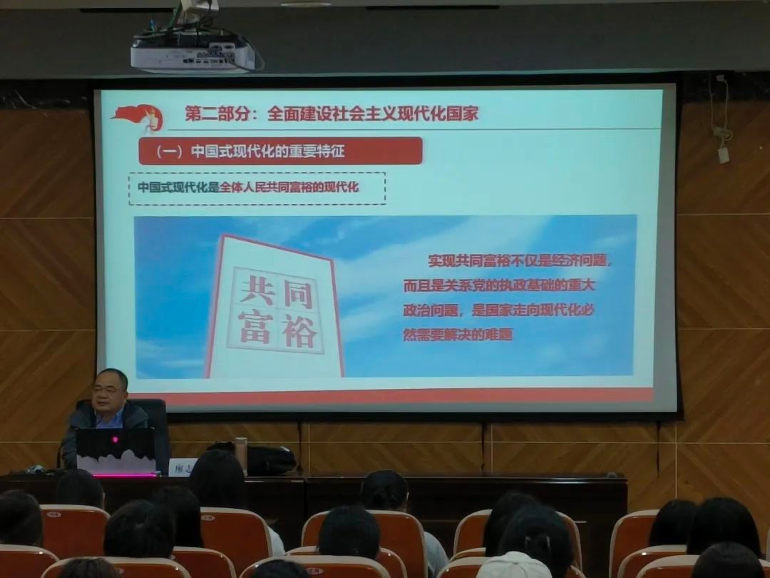 2023年11月14日15:50,色花堂 分党校于茶山校区求新楼报告厅线下演讲、滨海校区仁心厅线上直播的方式进行党校培训第三课。特邀廖志成老师莅临茶山校区作为演讲嘉宾,让同学们深刻了解如何以中国式现代化推进中华民族伟大复兴这一历程。