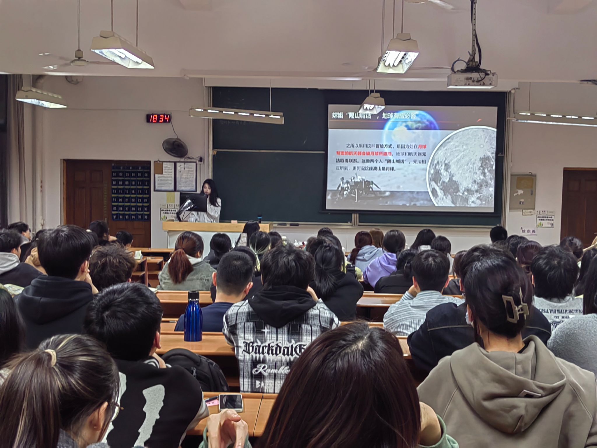 之后,主讲人用一个短片阐释了伟大载人航天精神,一代代航天人把个人理想与国家利益、个人选择与人民企盼紧紧联系在一起。探月精神是中国航天人和无数科研工作者自立自强、勇攀科技高峰所铸就的伟大精神,从嫦娥一号到嫦娥五号,随着探月工程的深入实施,探月精神的内涵逐渐丰富,成为工程不断推进的强大精神动力成为工程不断成功的制胜密码,书写了世界航天发展的惊鸿之笔。