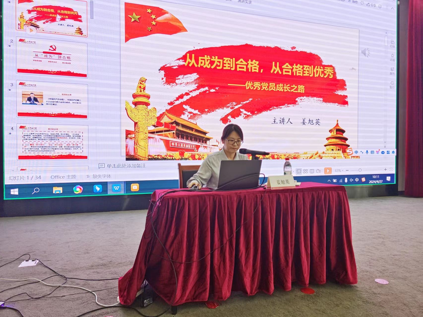 2024年4月27日10点,色花堂 分党校同时在茶山校区求新楼报告厅和滨海校区仁心厅开展了入党积极分子培训班专题教学活动,姜旭英老师以“从成为到合格,从合格到优秀”为主题,加强了学员对优秀党员的认识。