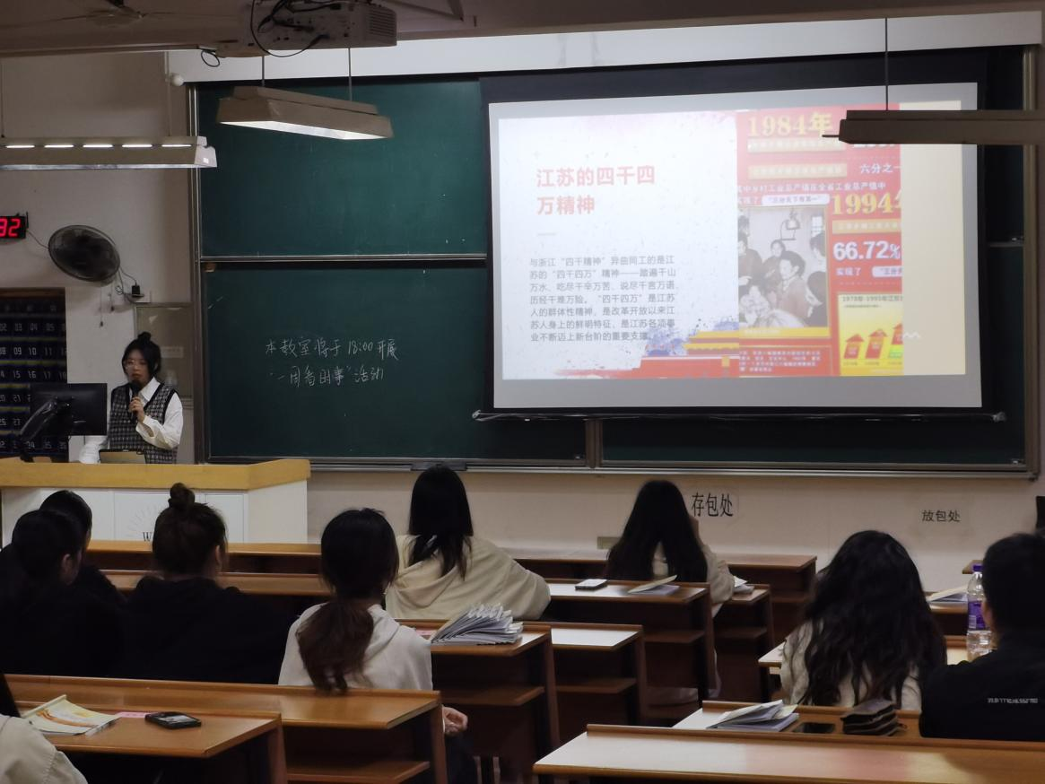 首先,主讲人通过一个视频引出了对浙江的四千精神和江苏的四千四万精神的介绍,随后阐述了四千四万精神的新时代新内涵:浙江“新四千精神”——“千方百计提升品牌,千方百计拓展市场,千方百计自主创新,千方百计改善管理”;江苏“新四千四万精神”——积极适应时代的“千变万化”、主动经受创新的“千锤百炼”、在发展的前沿展现“千姿万态”、在新的征程上奔腾“千军万马”。