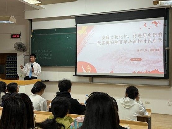 故宫百年,承文明,担使命。 这座从皇家禁苑走来的文化殿堂,藏中华文明根脉,载时代传承担当,在百年沧桑中书写着文物记忆与历史回响。党建服务与人才培训中心于2025年10月22日晚18:30在滨海校区和茶山校区开展了以“唤醒文物记忆,传递历史回响”为主题的一周看时事活动。主讲人从“故宫百年”“从禁苑到博物院”“文物南迁”“文化整体性”“传统与现代交融”“文明对话”六个层面进行讲述。
