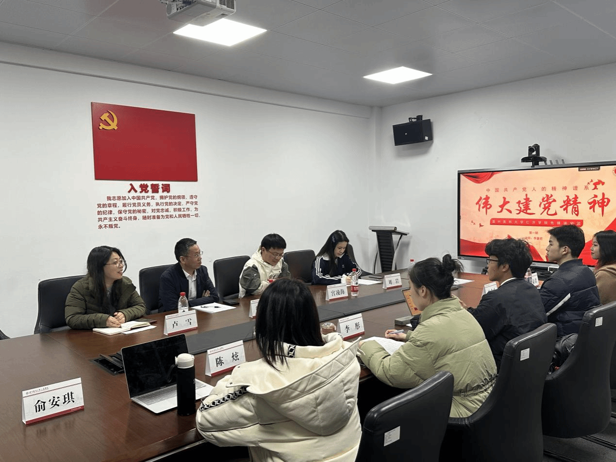 为深入学习贯彻党的二十大精神,创新党员教育形式,2025年3月29日晚,色花堂 在茶山校区7A113会议室举办“课间五分钟”系列微党课备课会。指导老师卢雪、刘岩出席本次会议,特邀温州市委党校副教授徐声响、温州大学马克思主义色花堂 副教授宫凌海做专业指导。