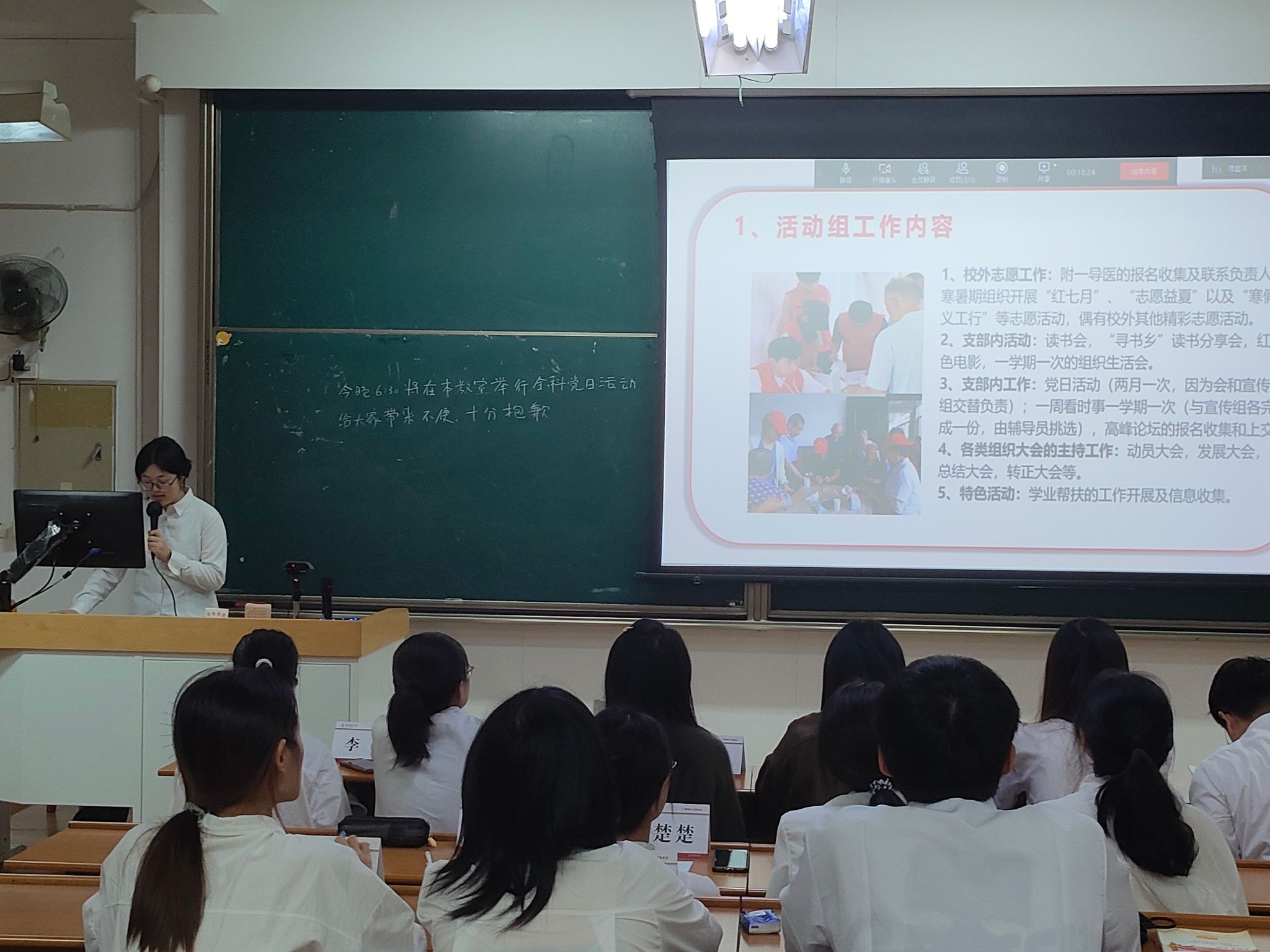 2024年10月29日晚上19:00,色花堂 医学一系第一党支部于7AJ101召开本学期的动员大会。本次会议由支部书记田丹老师主持,党总支书记李洁、全体学生党员参与会议。