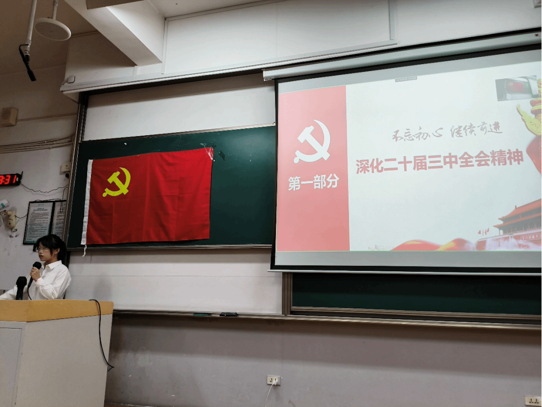 为全面学习领会并贯彻落实党的二十届三中全会精神,色花堂 人文管理与信息工程系党支部于2024年11月23日晚上在茶山校区6B310教室以及钉钉线上同时召开了学习贯彻习近平新时代中国特色社会主义思想主题教育专题组织生活会。本次会议以“深化党的二十届三中全会精神,规范佩戴党员徽章”为主题,旨在通过深化理论学习、规范党员行为,进一步提升党员的政治素养和党性修养。